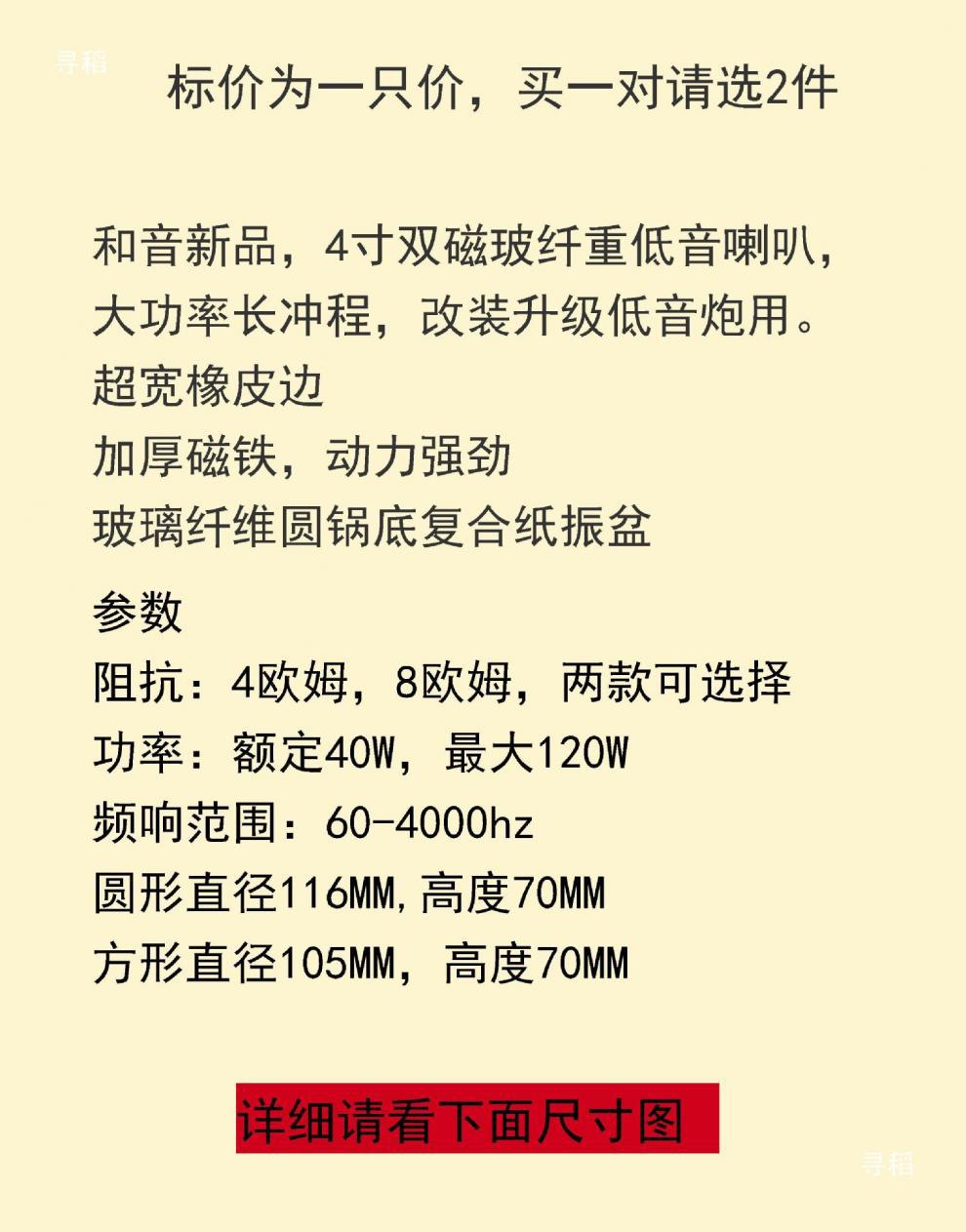 하모니 4inch 우퍼 서브우퍼 수정 및 업그레이드 고출력 롱 스트로크 유리 섬유 베이스 듀얼 마그넷스토어 가기