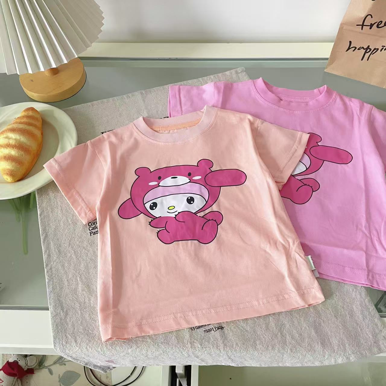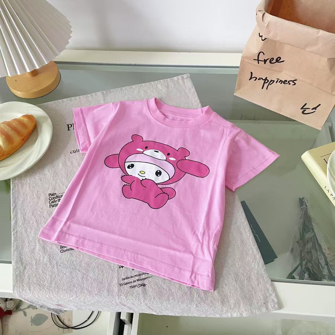 AYSA8212 여자 반팔 2025 여름 새로운 귀여운 대비 색 만화 동물 탑 서양식 티셔츠