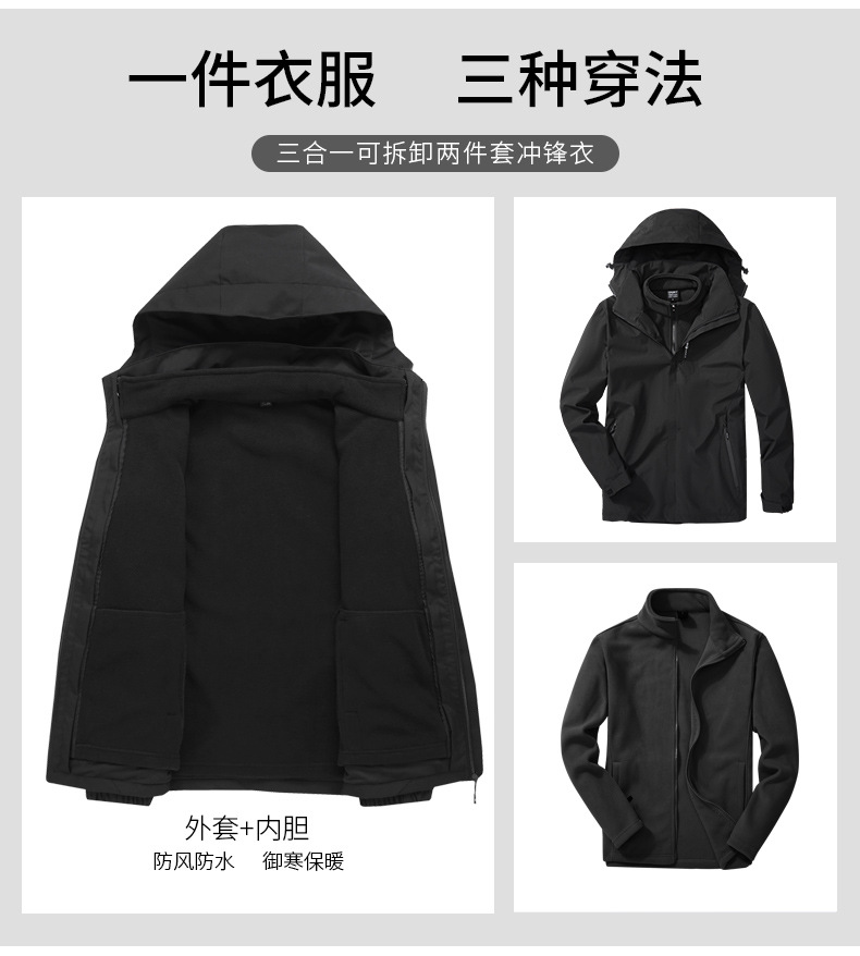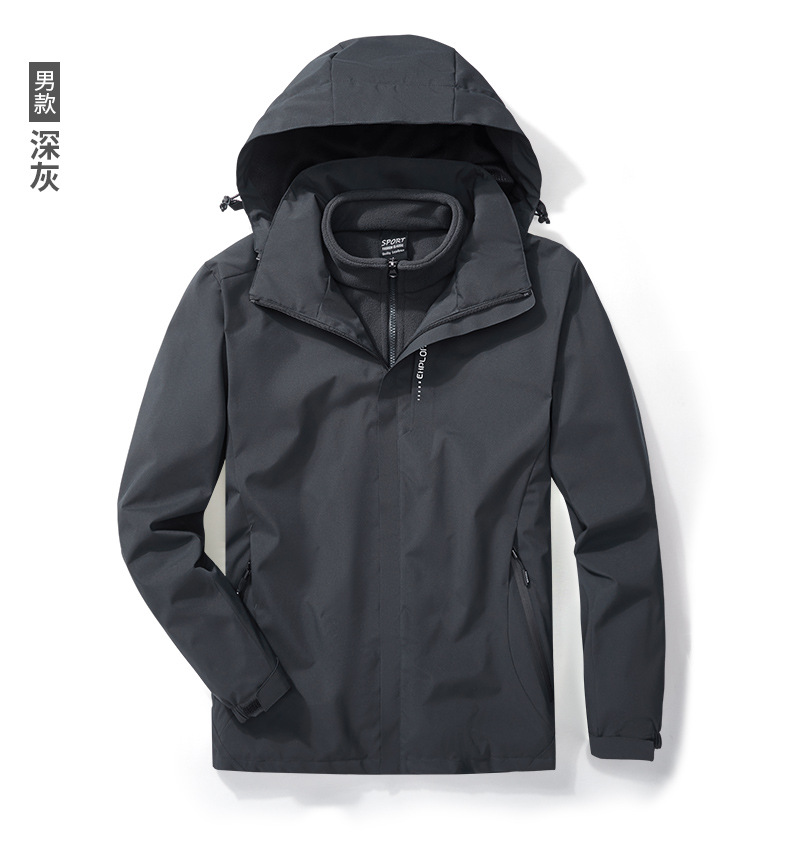 커플의 야외 3 대 1 충전 의류 분리 가능한 2 피스 방풍 방수 재킷 남녀 인쇄 가능한 로고 툴링스토어 가기