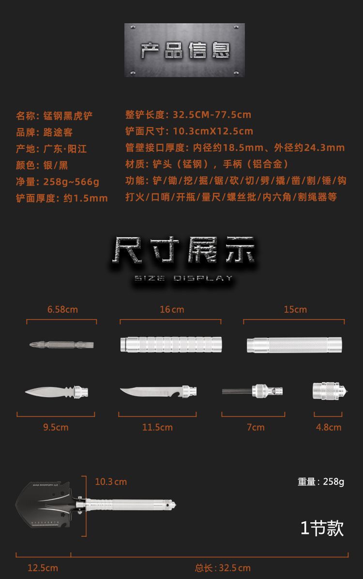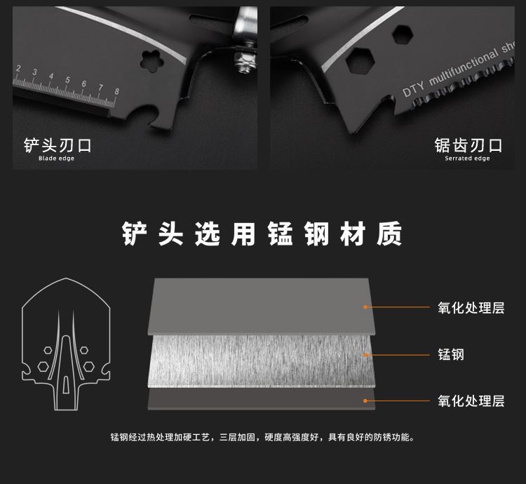 다기능 야외 엔지니어 삽 원래 필드 생존 비상 장비 차량 삽 군인 삽 망간 강철 낚시 삽