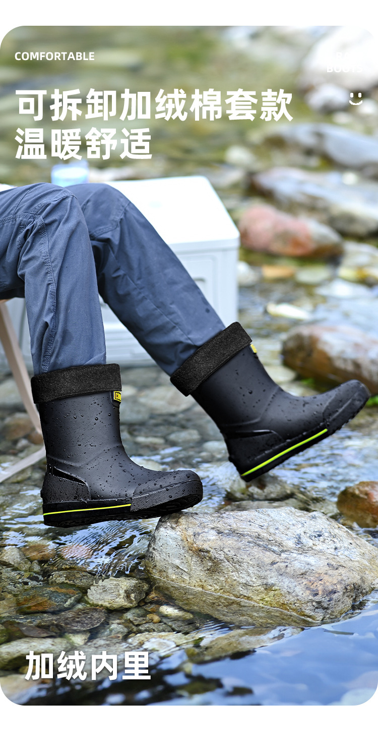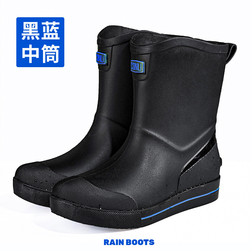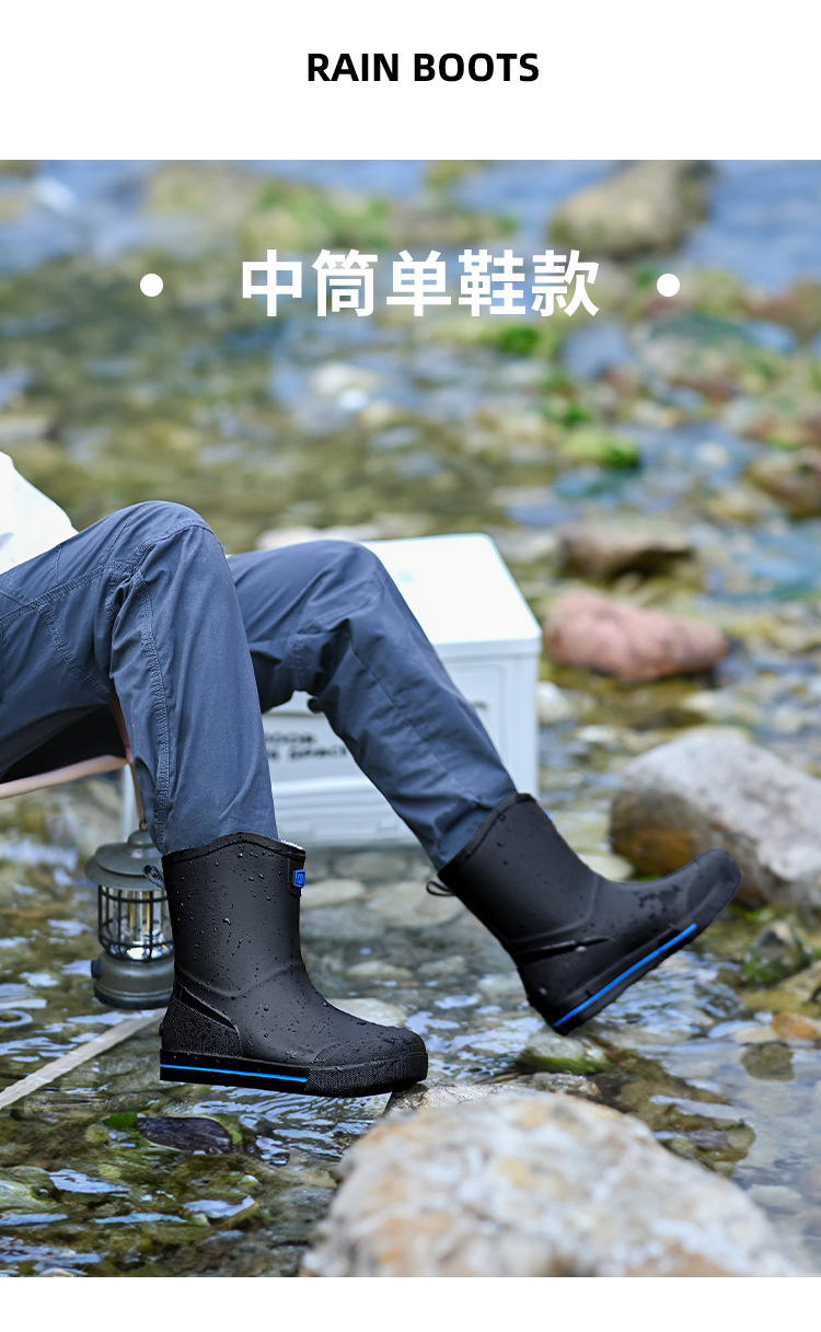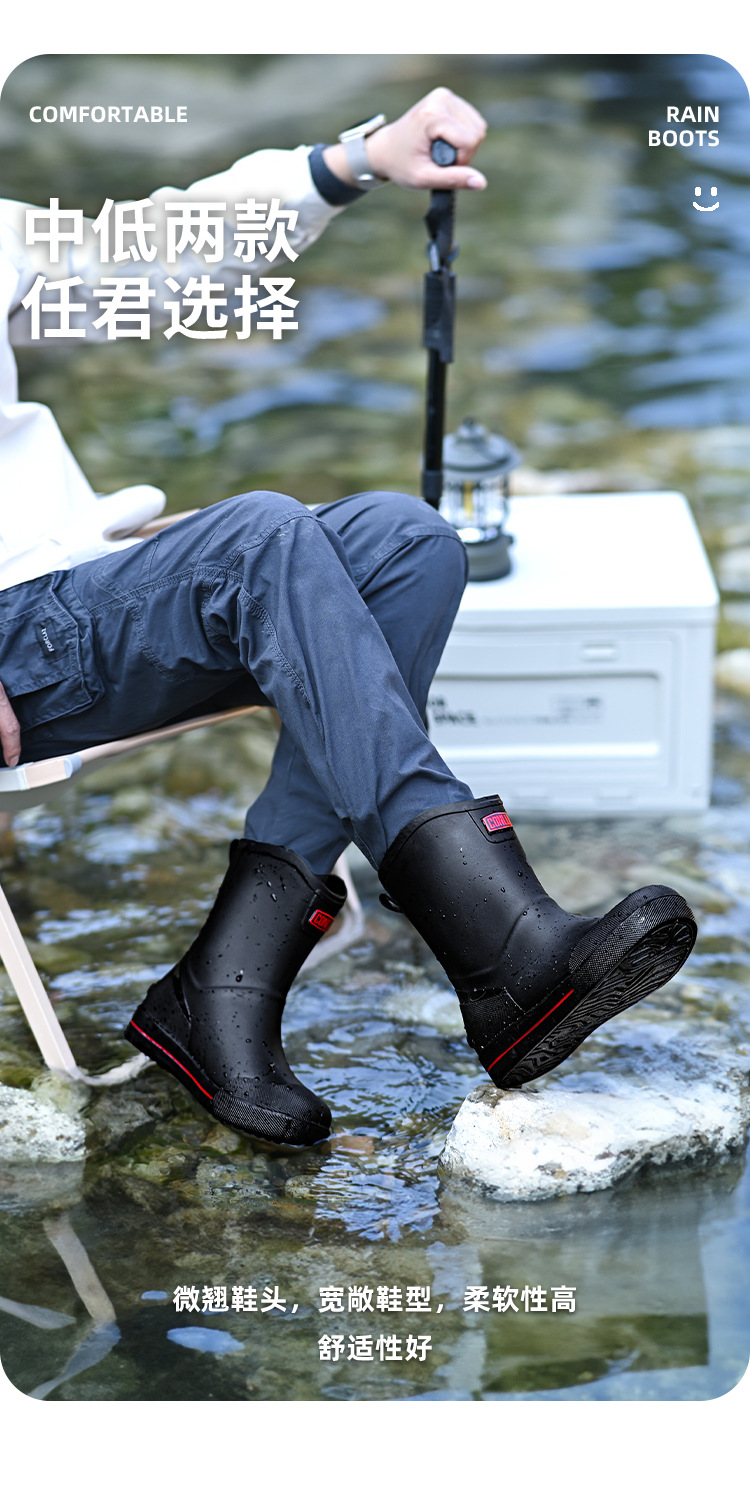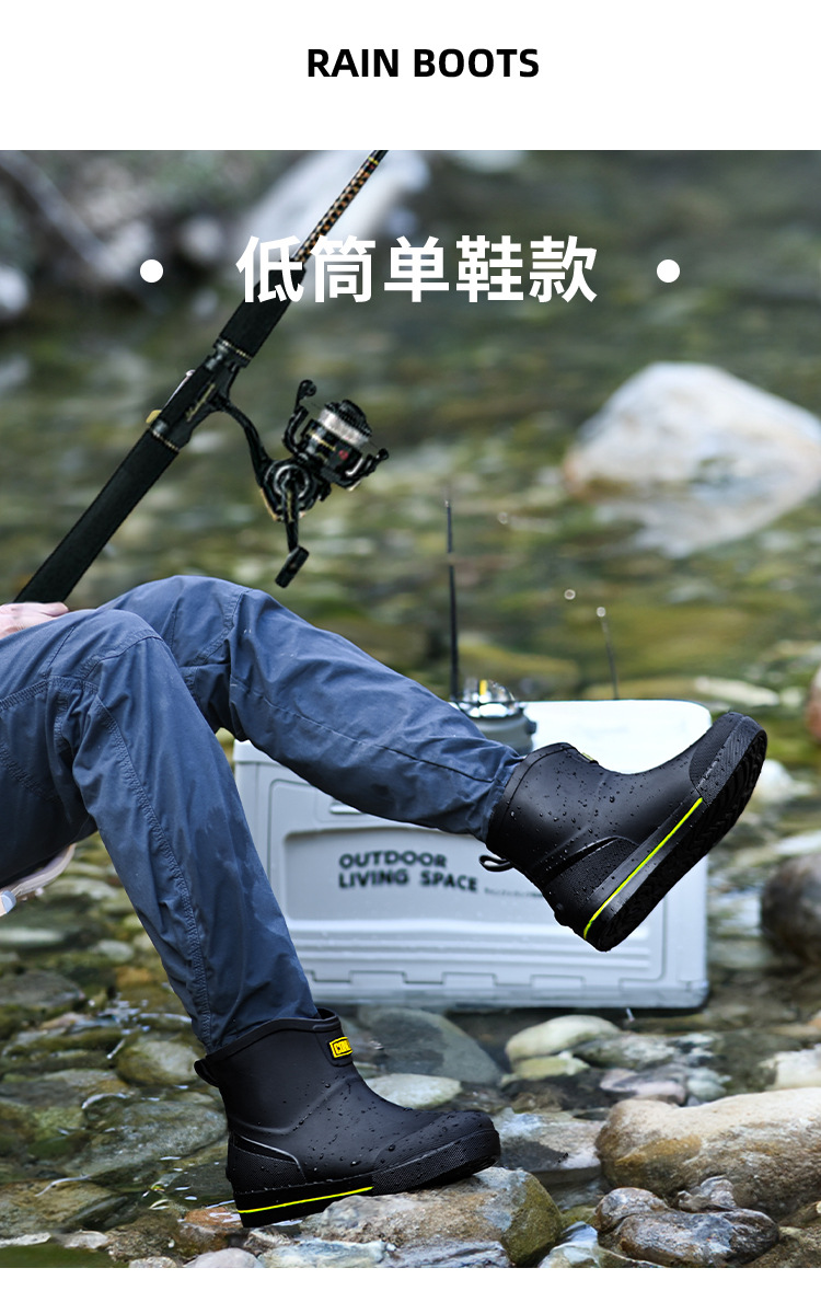 남성용 크로스보더 장화, 패셔너블한 미끄럼 방지 종아리 중간 장화, 새로운 테이크아웃 라이더, 야외 낚시 워터슈즈, 건설현장 고무신스토어 가기