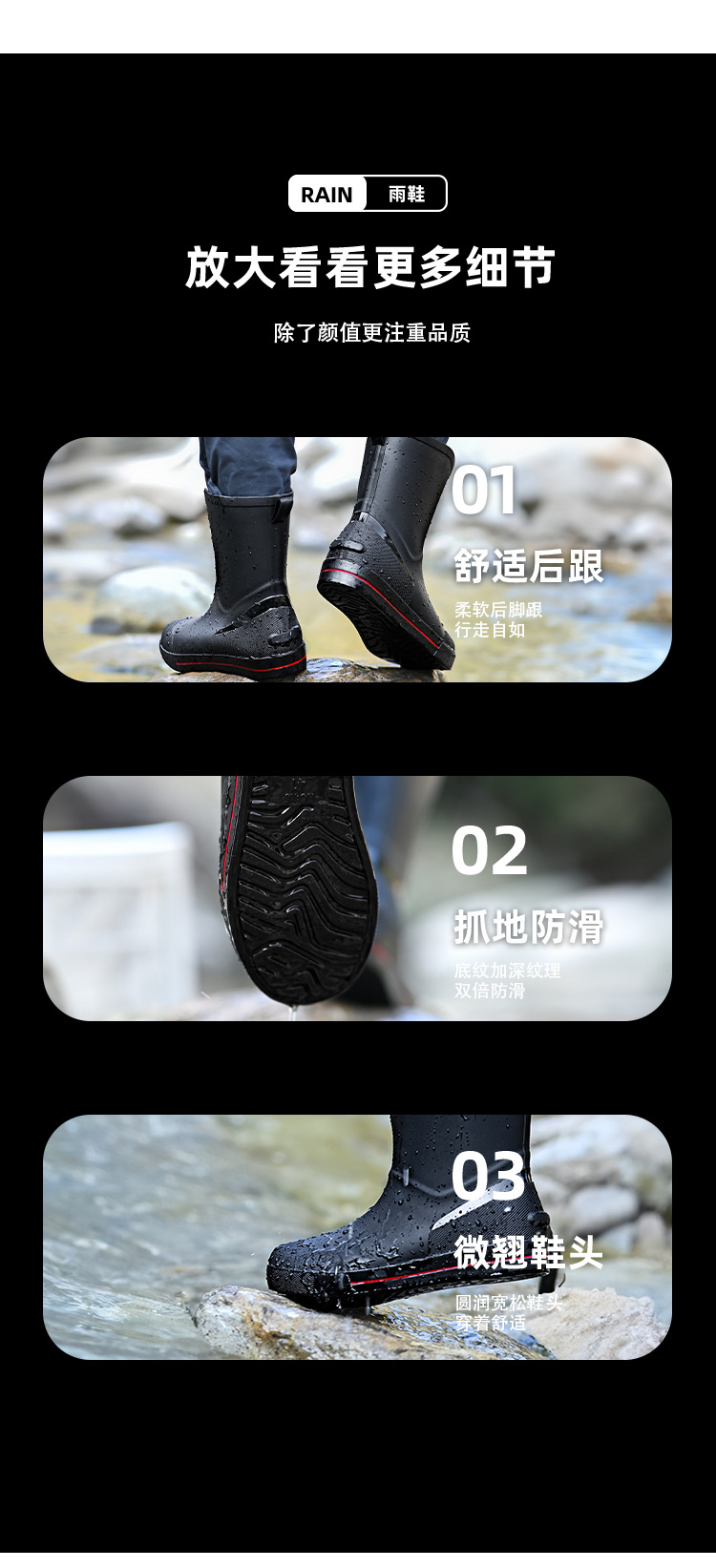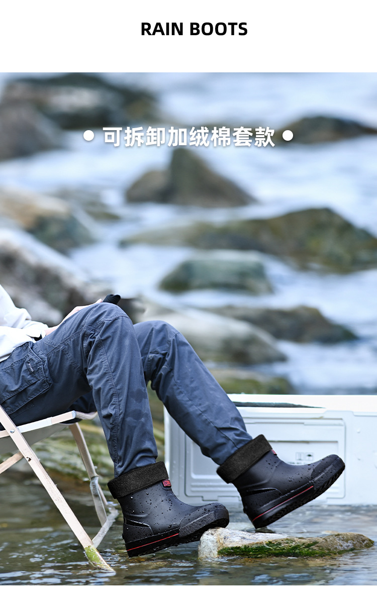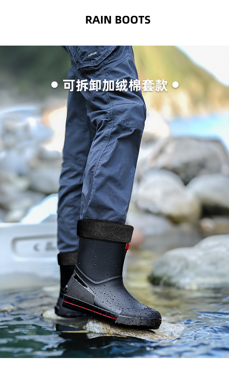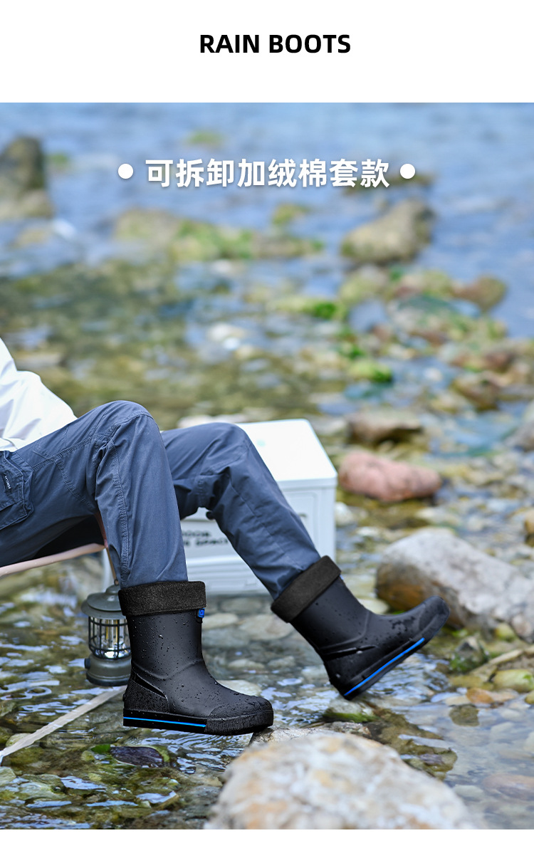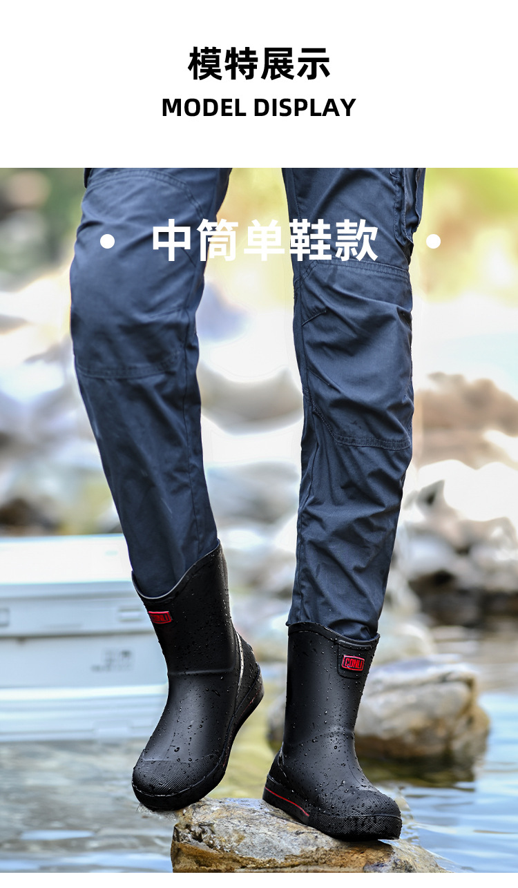 남성용 크로스보더 장화, 패셔너블한 미끄럼 방지 종아리 중간 장화, 새로운 테이크아웃 라이더, 야외 낚시 워터슈즈, 건설현장 고무신스토어 가기