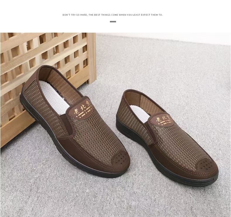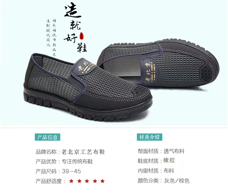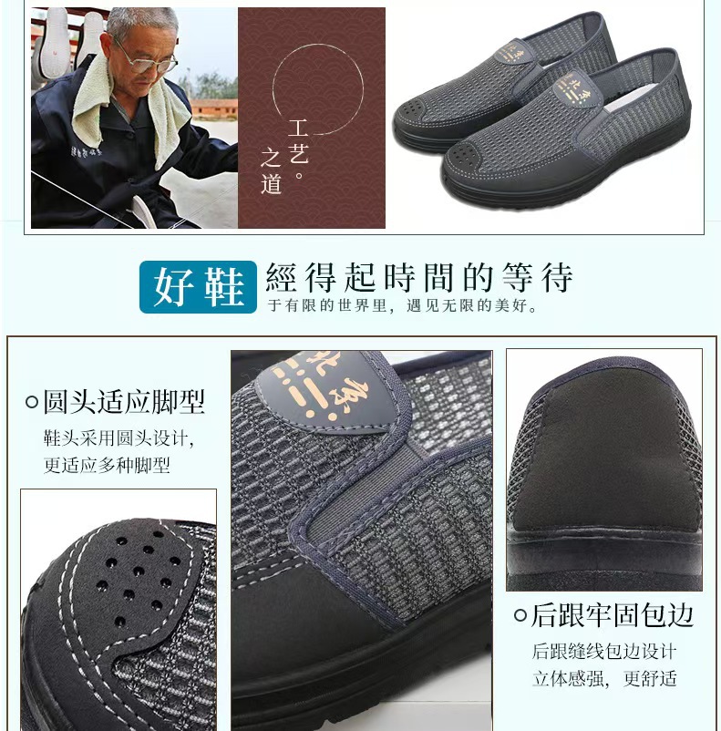 중년 및 노년층을 위한 새로운 스타일의 올드 베이징 천 신발, 캐주얼 면 슬립온 아빠 플라이 니트 워싱 남성 싱글 슈즈스토어 가기