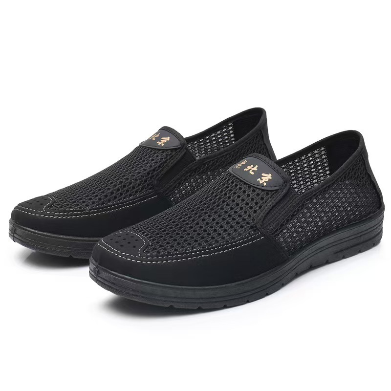 중년 및 노년층을 위한 새로운 스타일의 올드 베이징 천 신발, 캐주얼 면 슬립온 아빠 플라이 니트 워싱 남성 싱글 슈즈