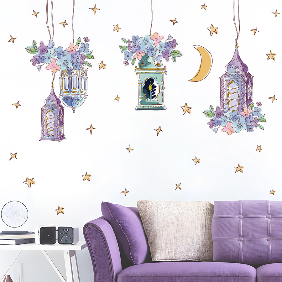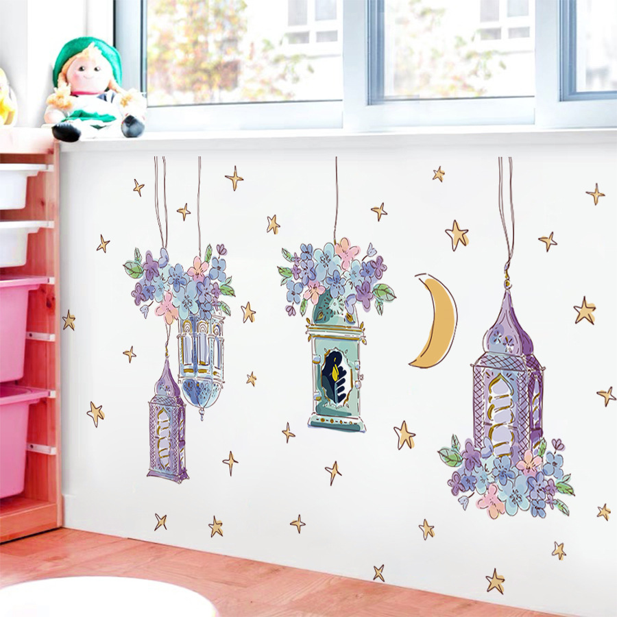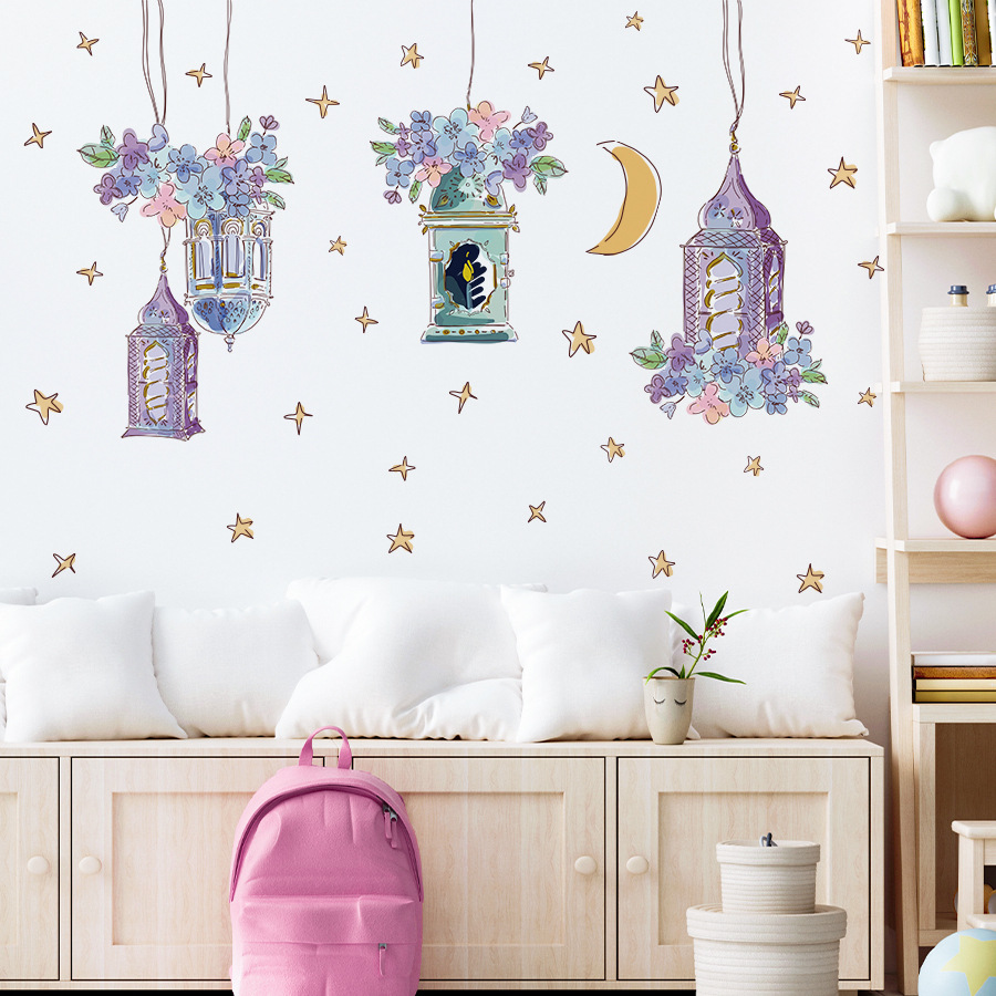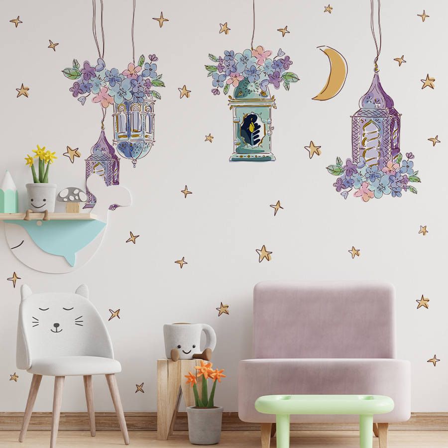 BR3651H 크리 에이 티브 돔 하우스 건물 시뮬레이션 펜던트 별이 빛나는 하늘 자체 접착 벽 스티커 침실 임대 집 장식 스티커