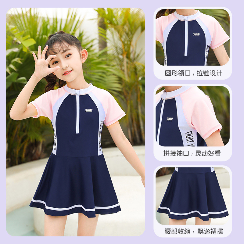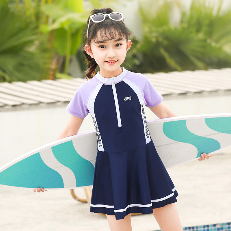 여자 수영복 2025 원피스 어린이 아기 귀여운 수영복 스플릿 어린이 솔리드 컬러 온천 수영복 도매스토어 가기