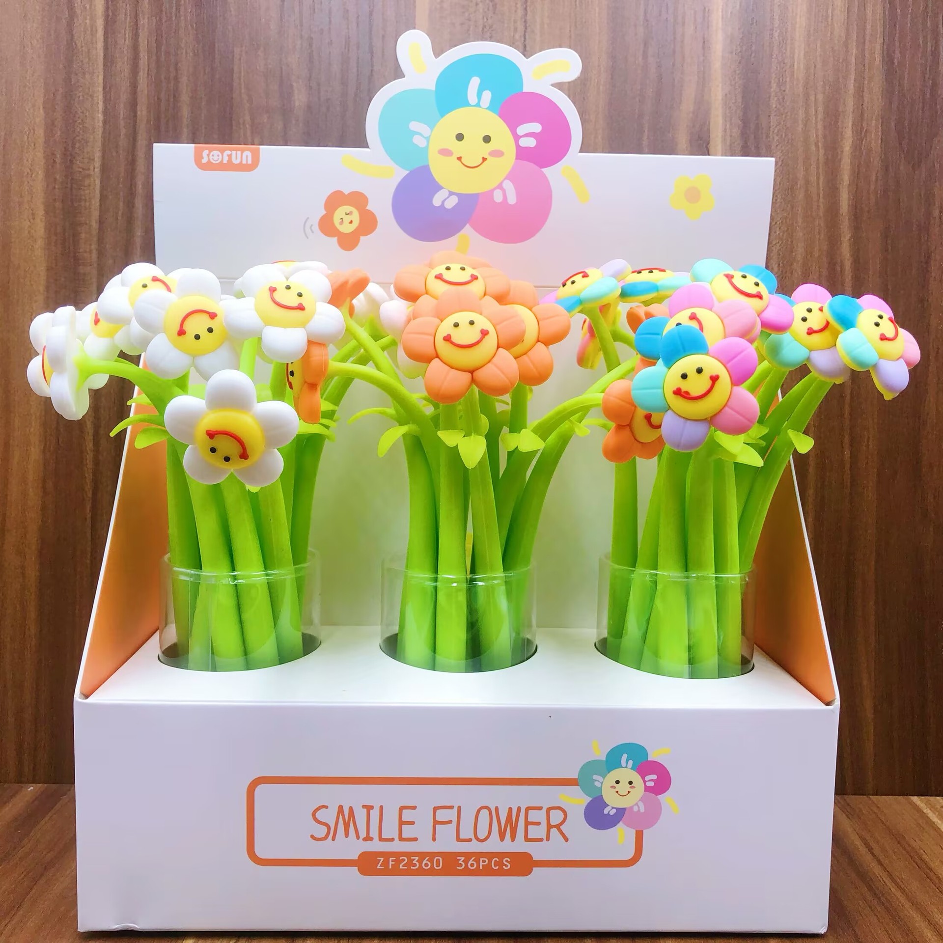 창의적인 부드러운 실리콘 고급 중성펜 2360 스마일리 해바라기 실리콘 중성펜 36개 한 박스스토어 가기