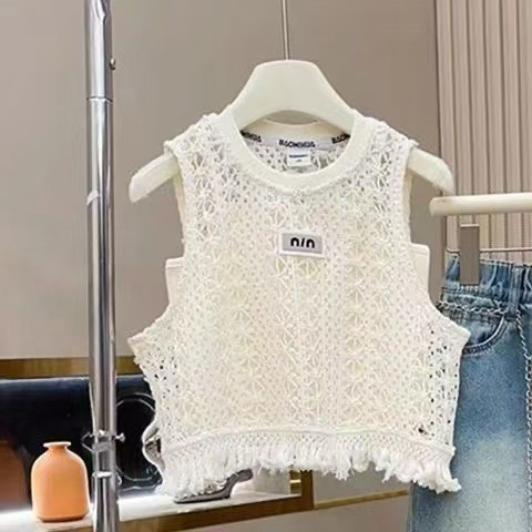소녀 여름 2025 새로운 유행 서양식 중공 여름 조끼 슬링 톱 데님 3 피스 세트 패션스토어 가기