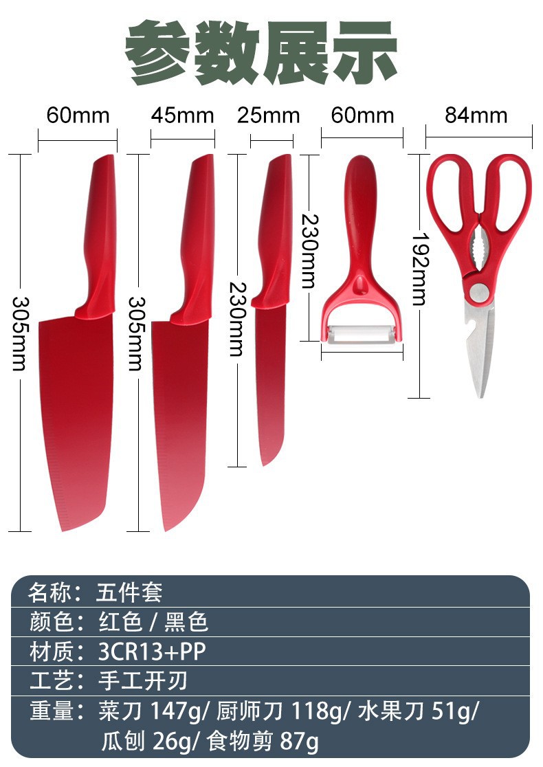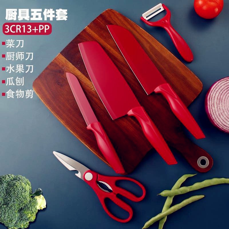 스테인레스 스틸 주방 칼 5종 세트 과일 칼 칼 부엌 칼 가위 멜론 슬라이서 칼 홈 세트 기숙사 ..