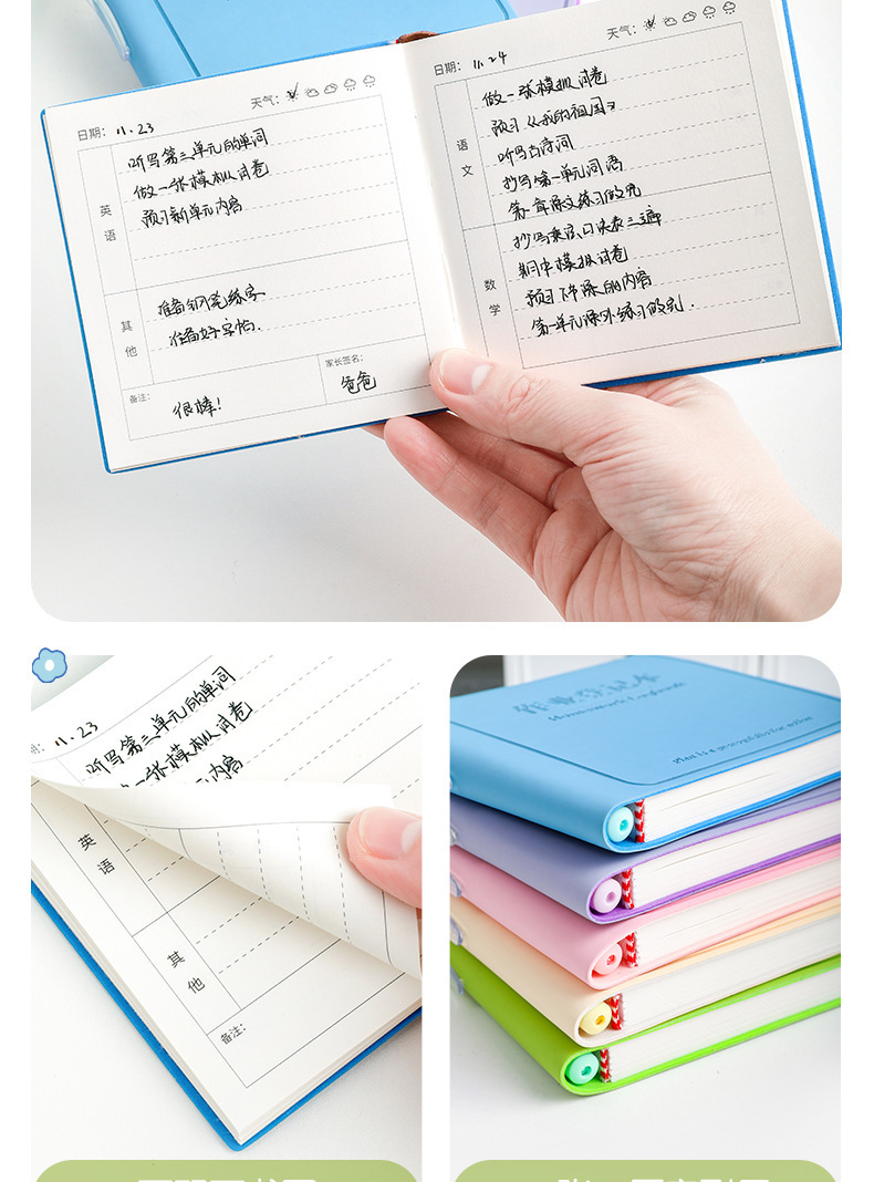 하드커버 펜삽입 노트, 숙제등록부, 초등학생 특수 학생 문구 메모장, 컴팩트하고 휴대 가능