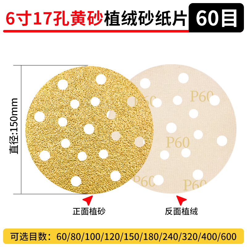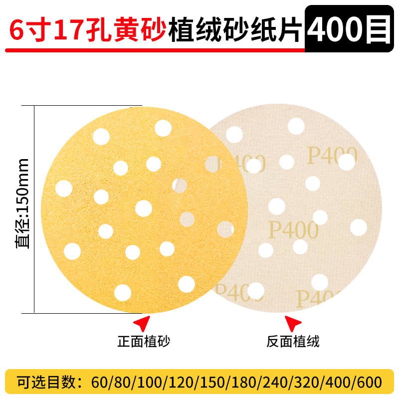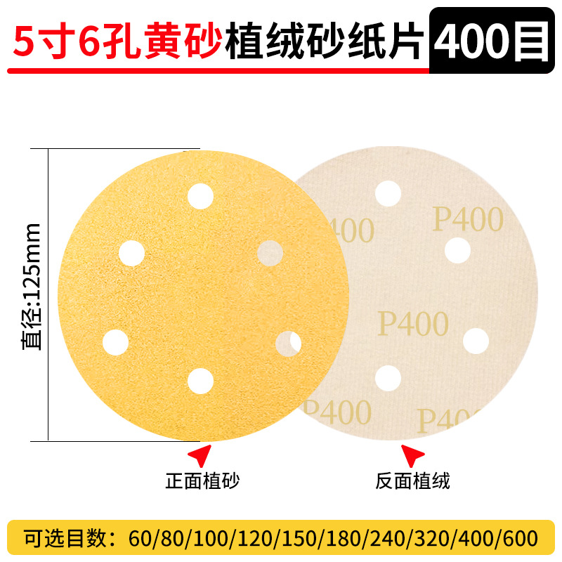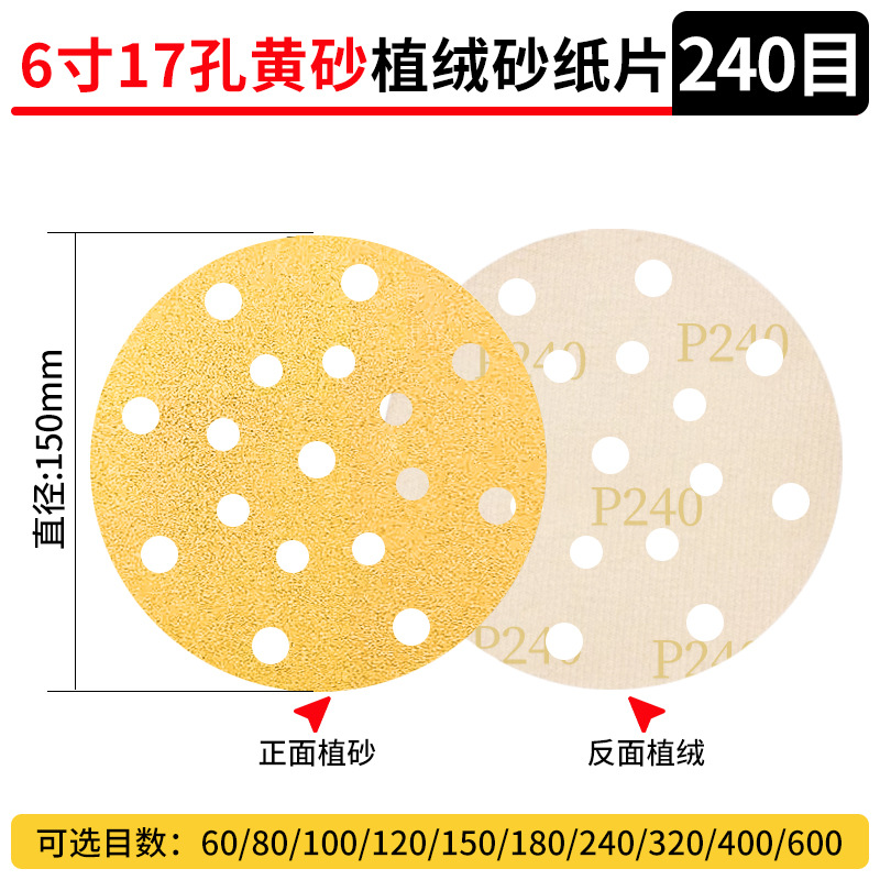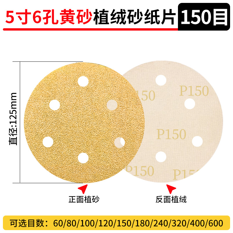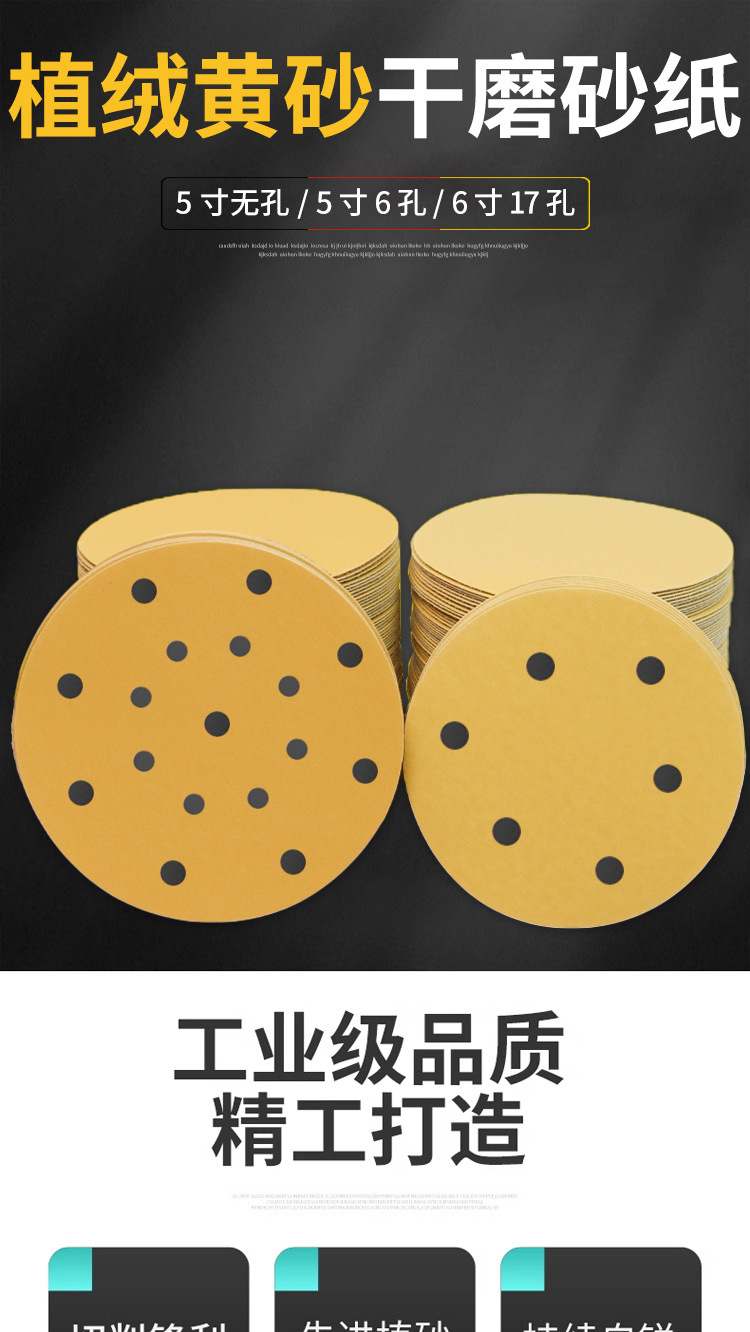5인치 6홀 플로킹 노란색 사포 건식 연마지 시트 자동차 퍼티 연마 유물 6인치 17홀 에어 그라인더 노란색 사포스토어 가기