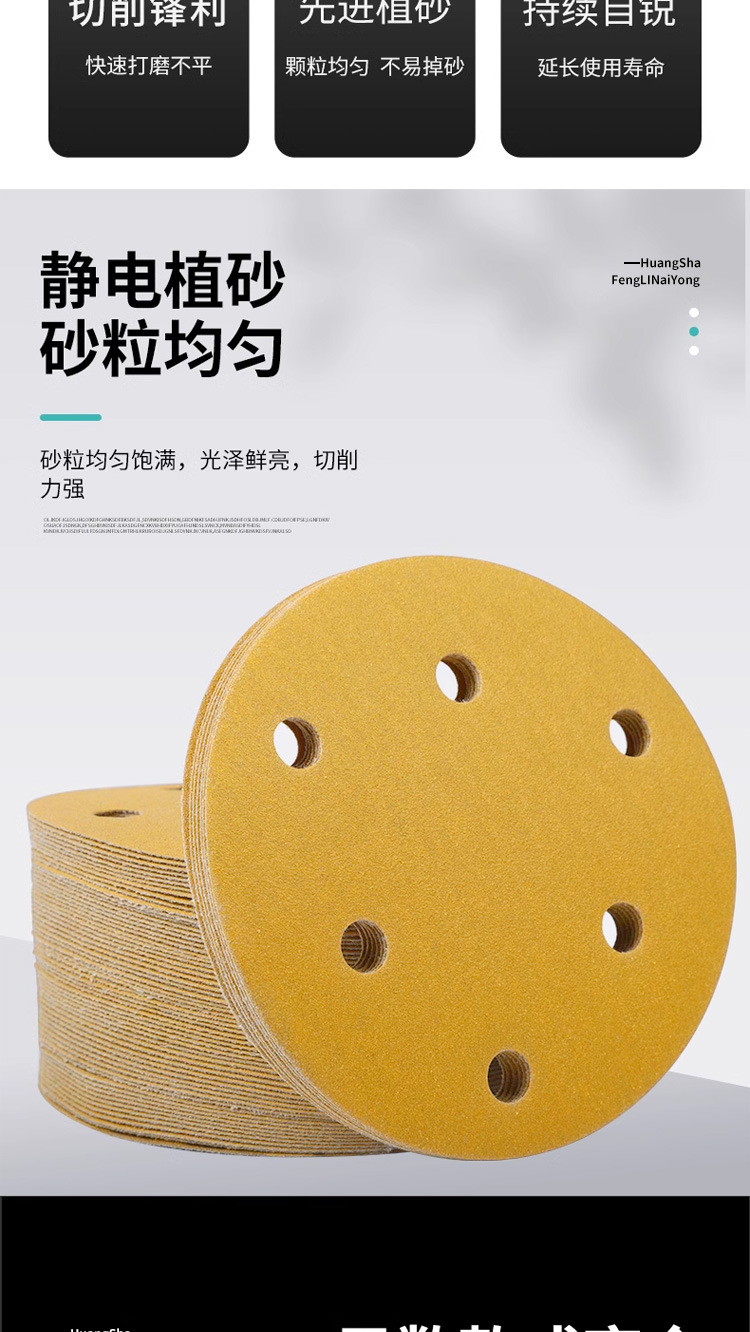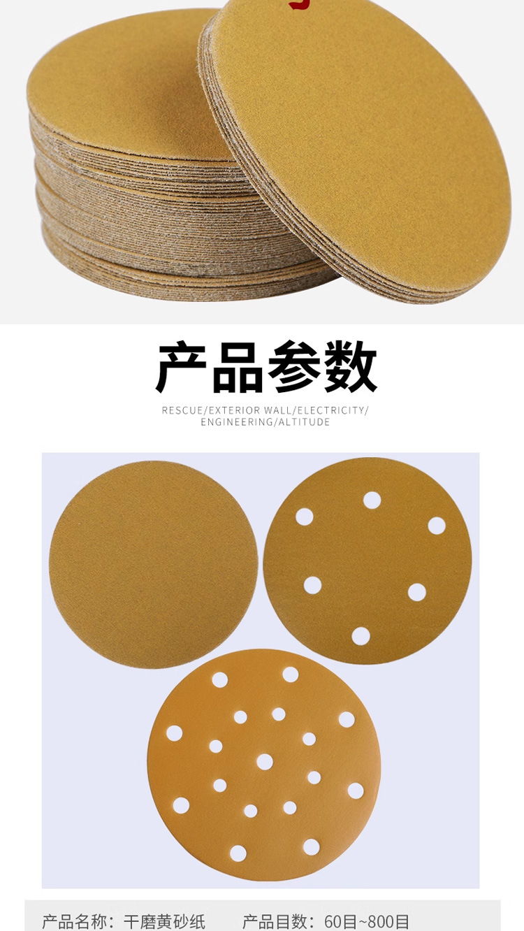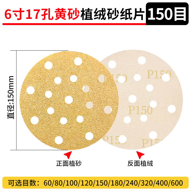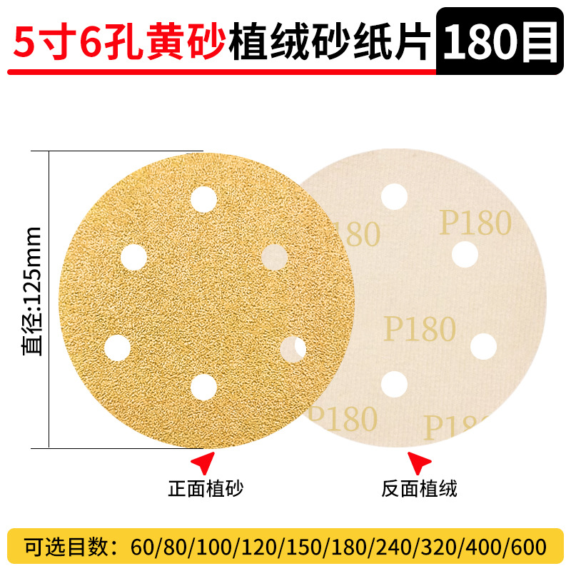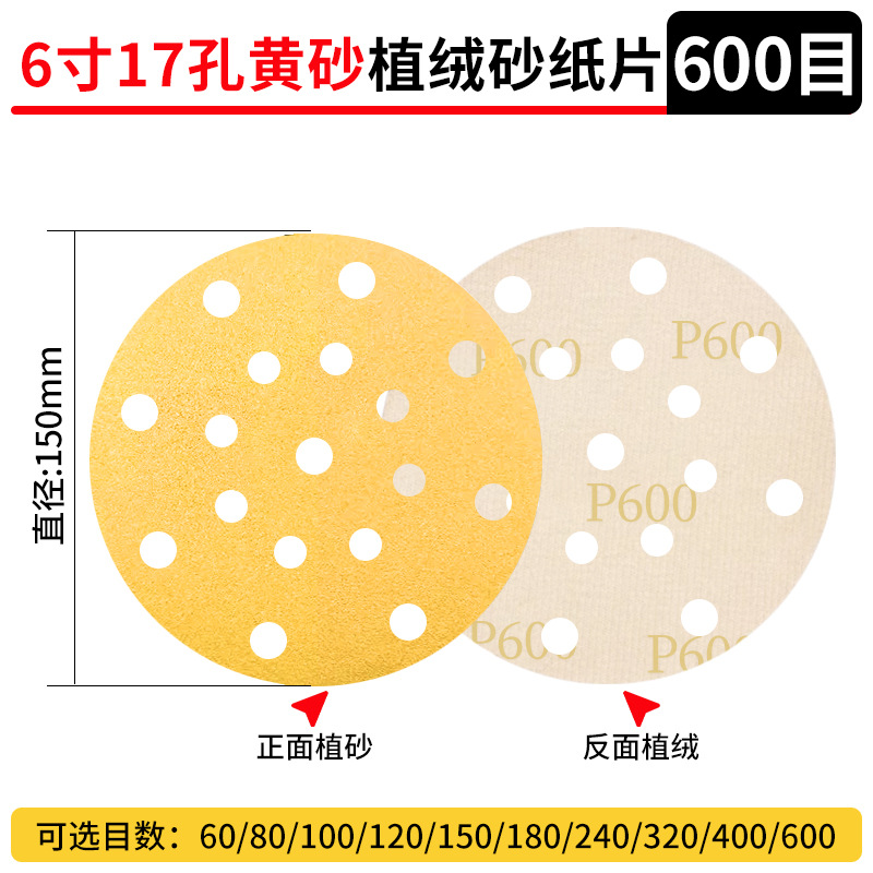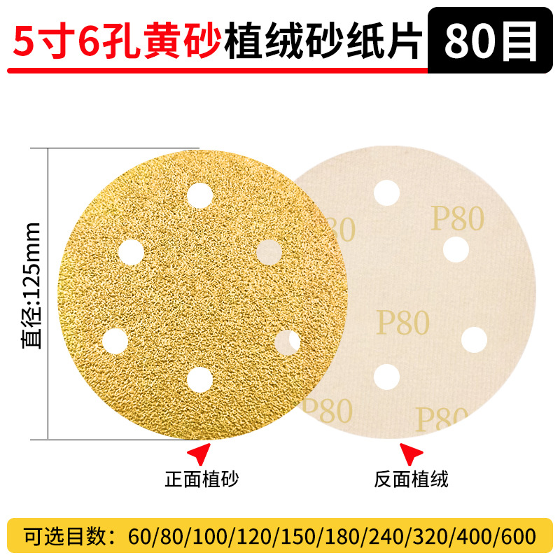 5인치 6홀 플로킹 노란색 사포 건식 연마지 시트 자동차 퍼티 연마 유물 6인치 17홀 에어 그라인더 노란색 사포스토어 가기
