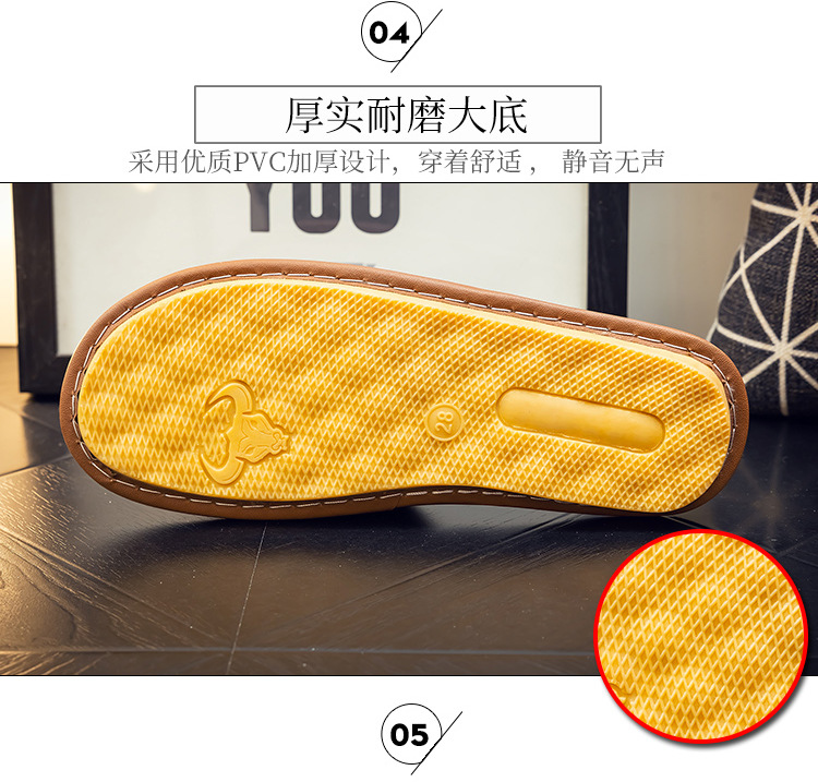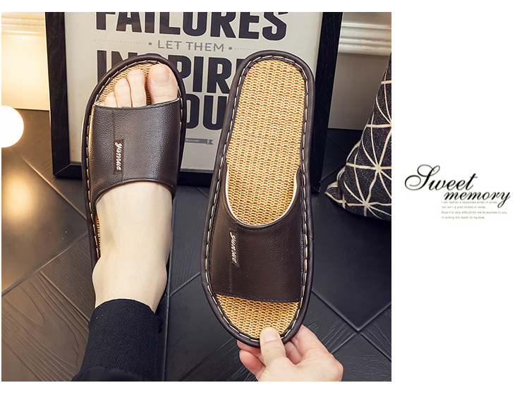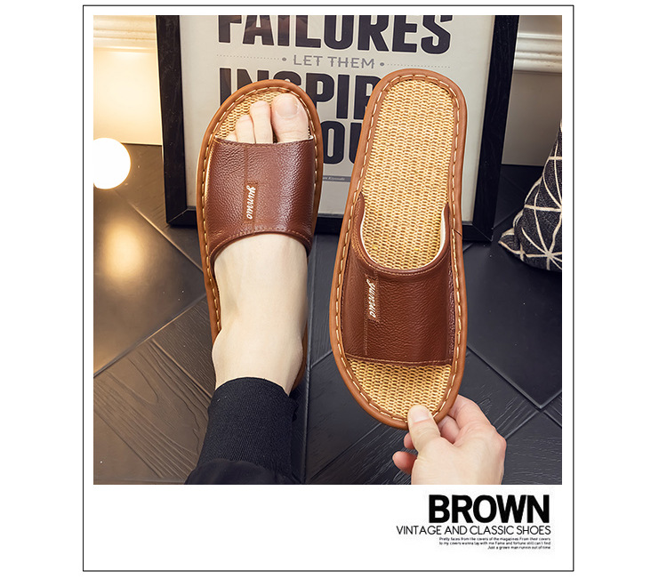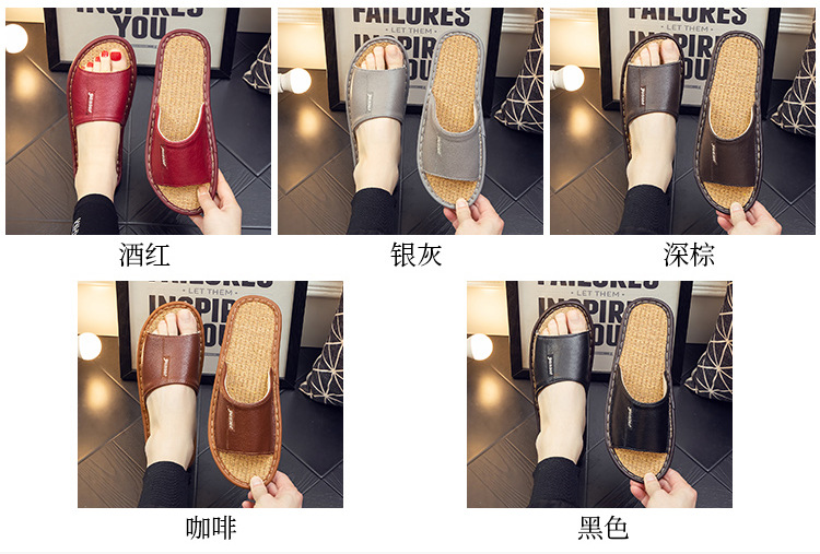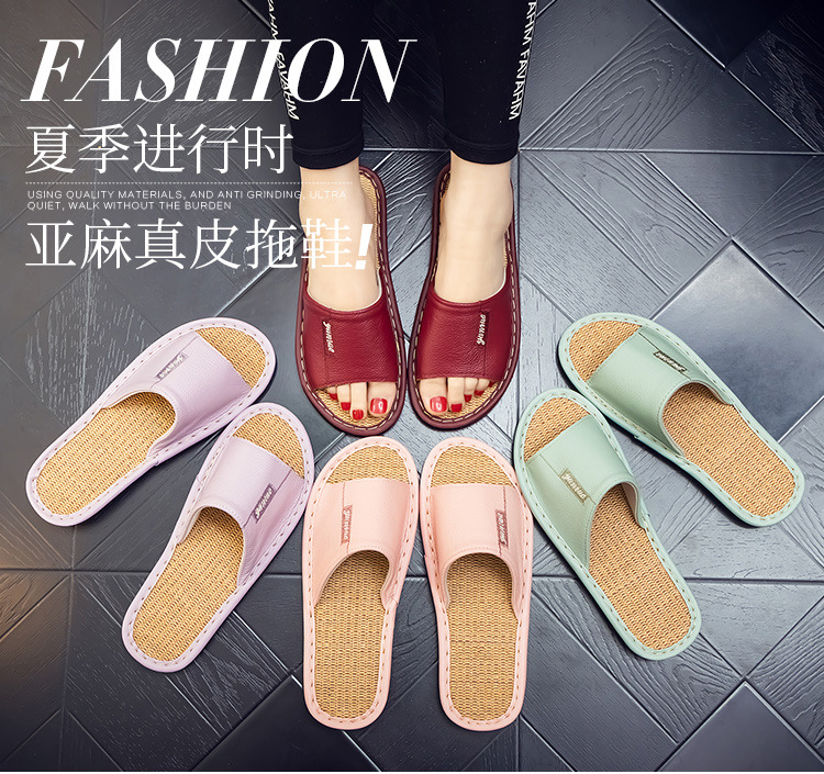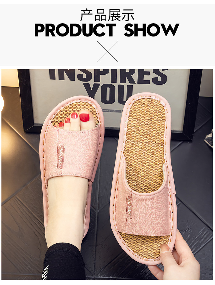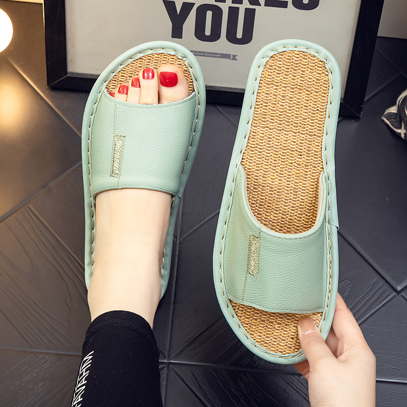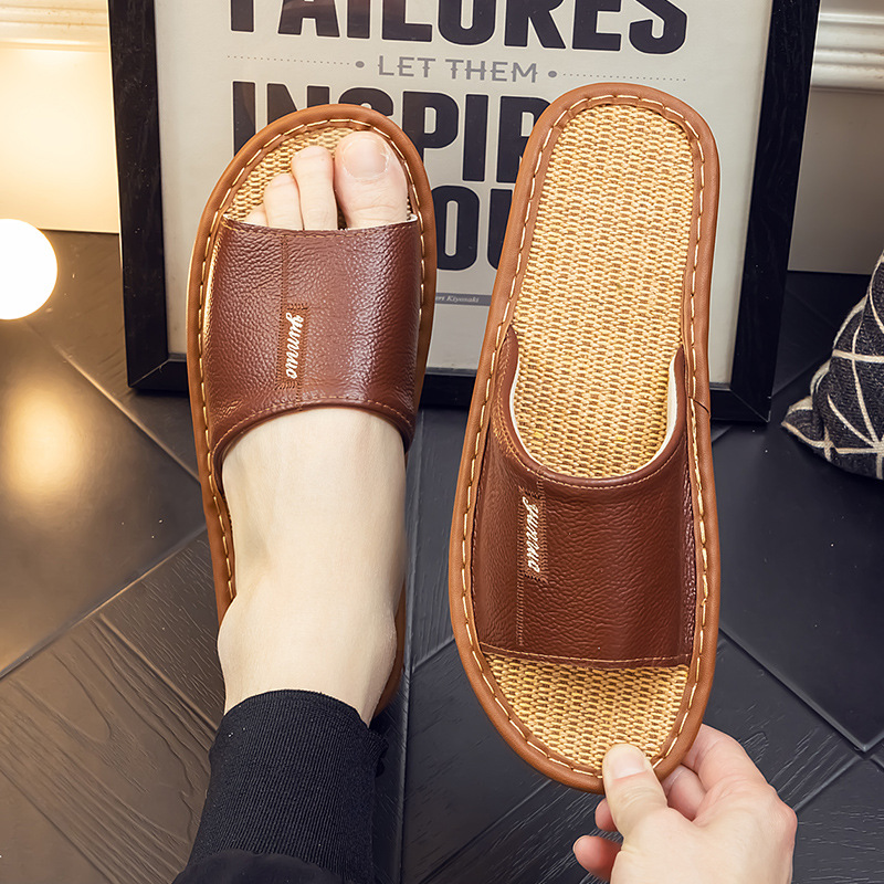 가정용 실내용 여름 통기성 가죽 린넨 슬리퍼 여성용 미끄럼 방지 두꺼운 밑창 소가죽 슬리퍼 커플 남성용스토어 가기