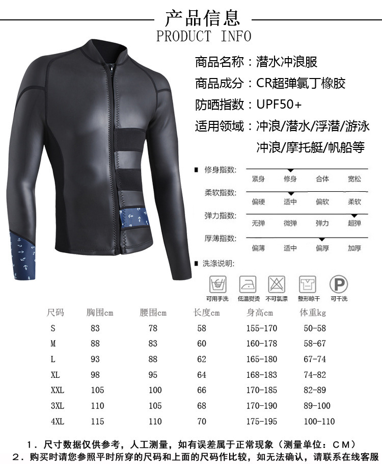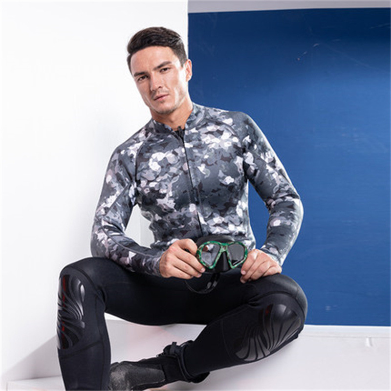 2mm 잠수복 남성용 긴 서핑 재킷 스플릿 긴팔 딥 다이빙 및 스노클링 따뜻한 자외선 차단 및 방한 해파리 슈트스토어 가기