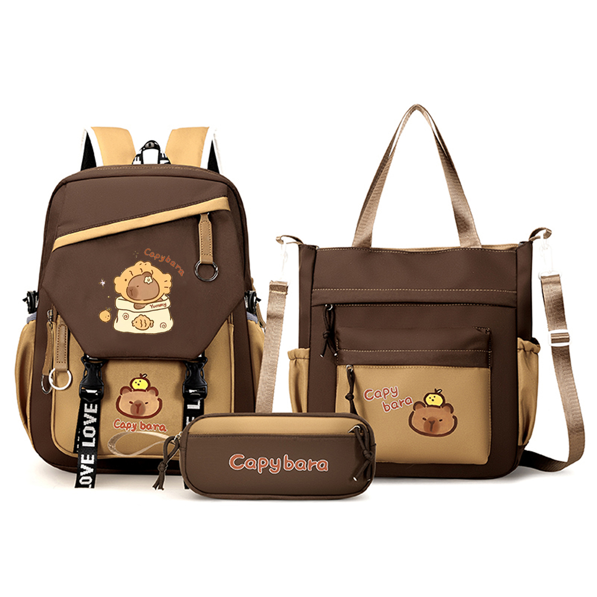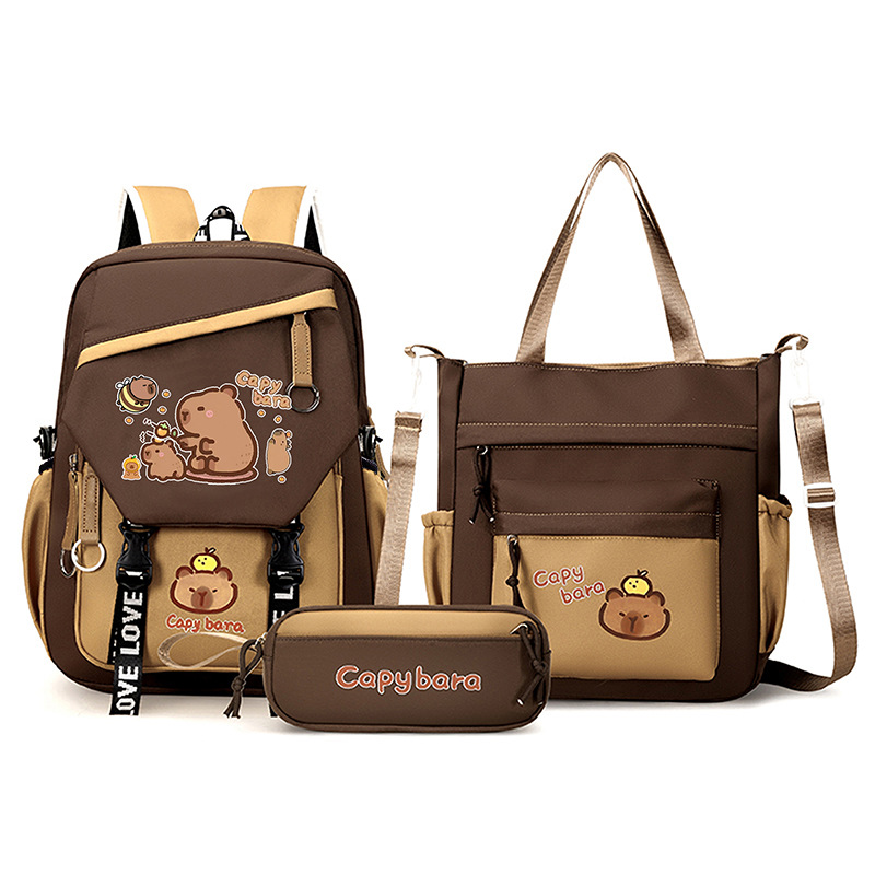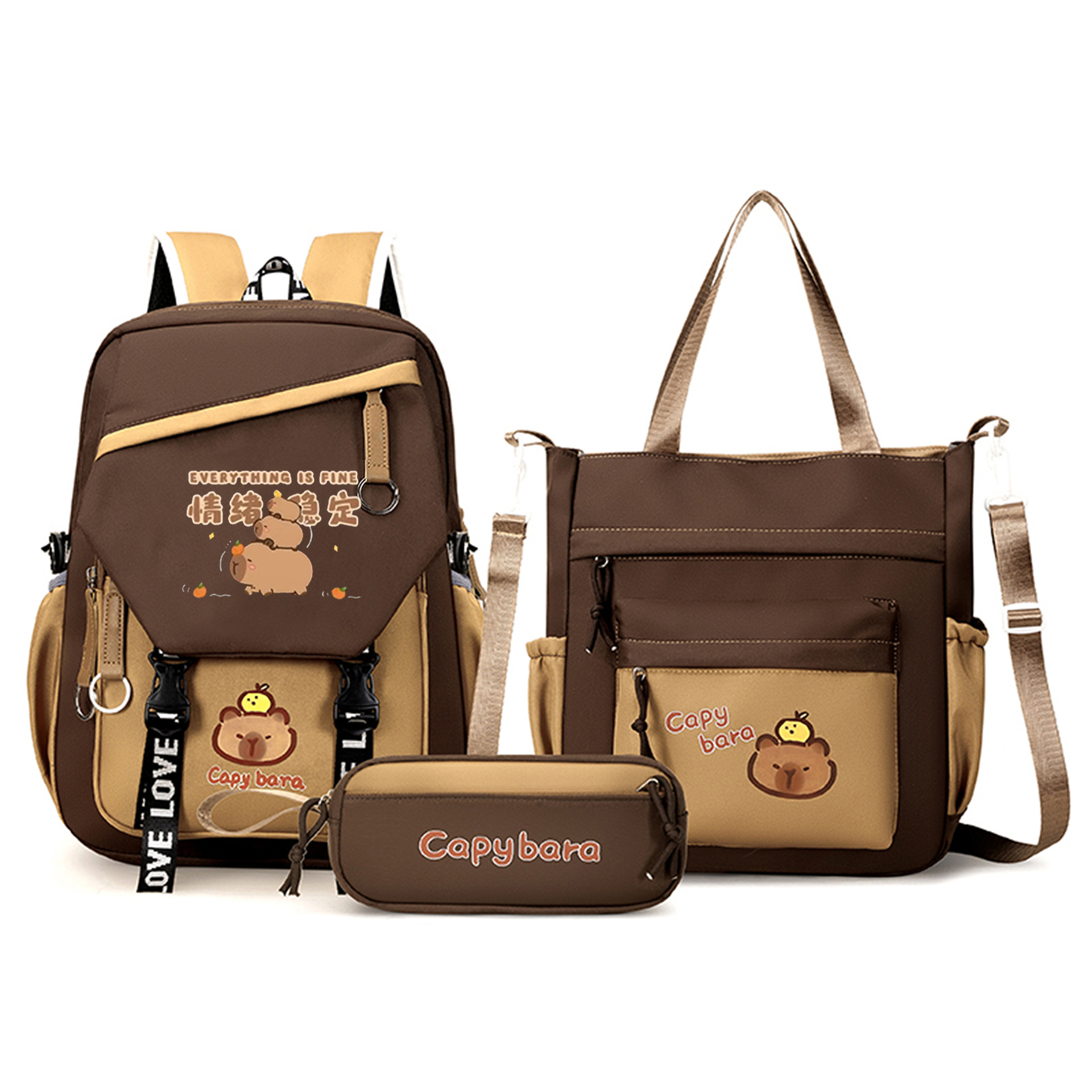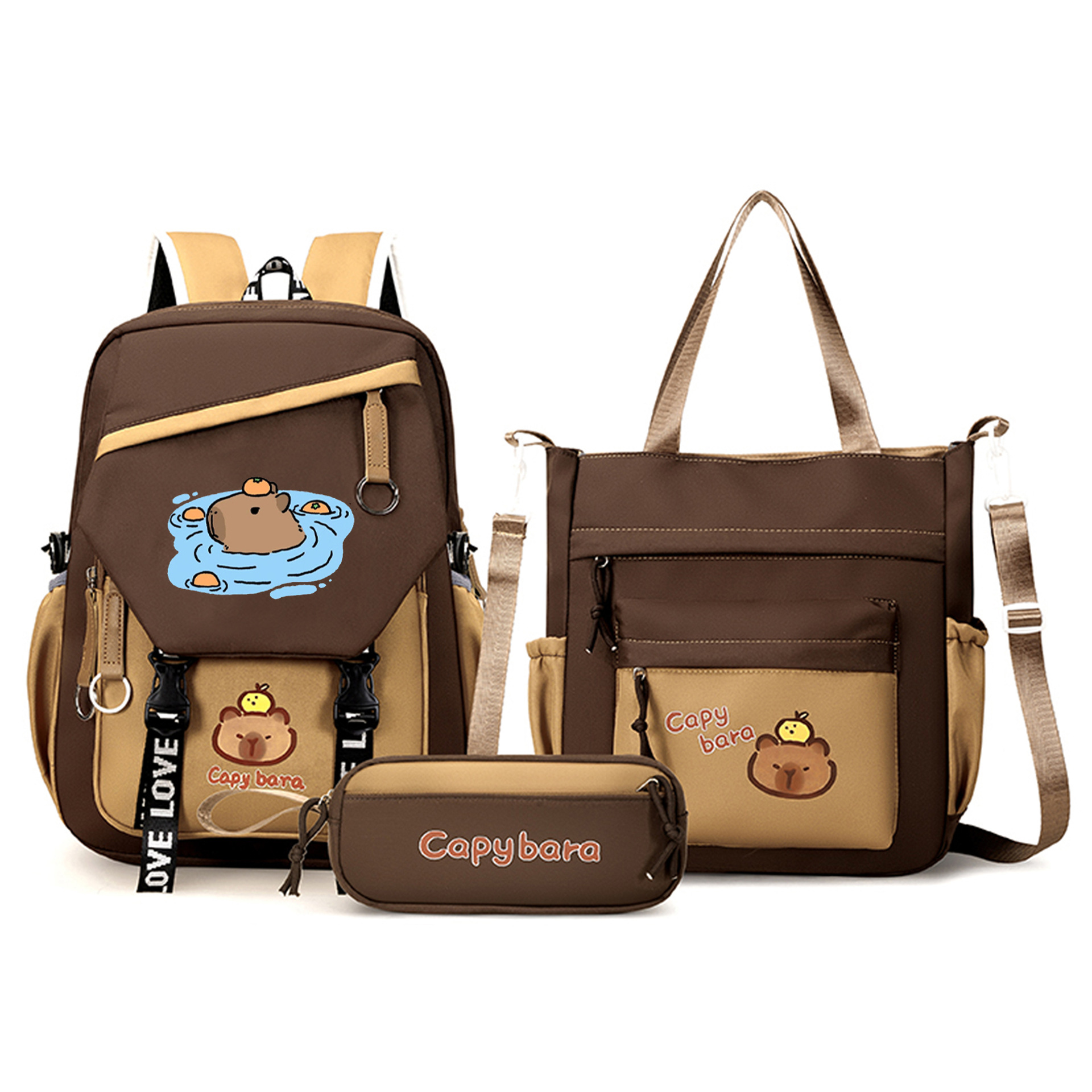 카피 발라 대용량 배낭 카피 바라 만화 학생 스쿨 백 크로스 바디 백 트램 백 연필 케이스 3 피스 세트