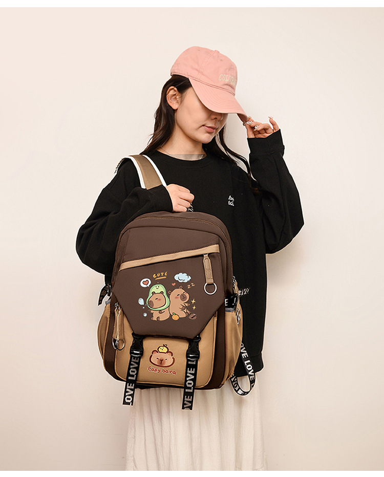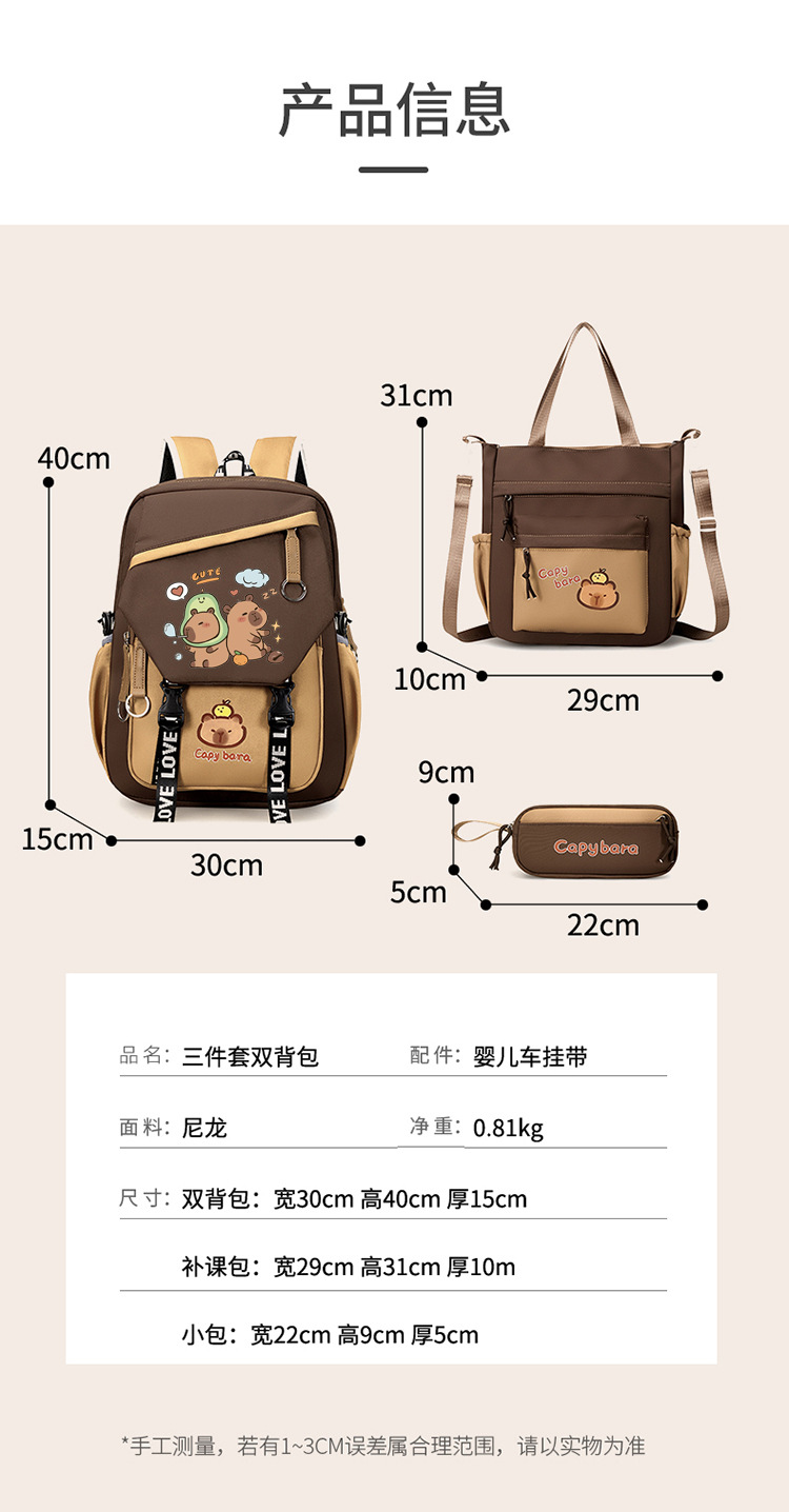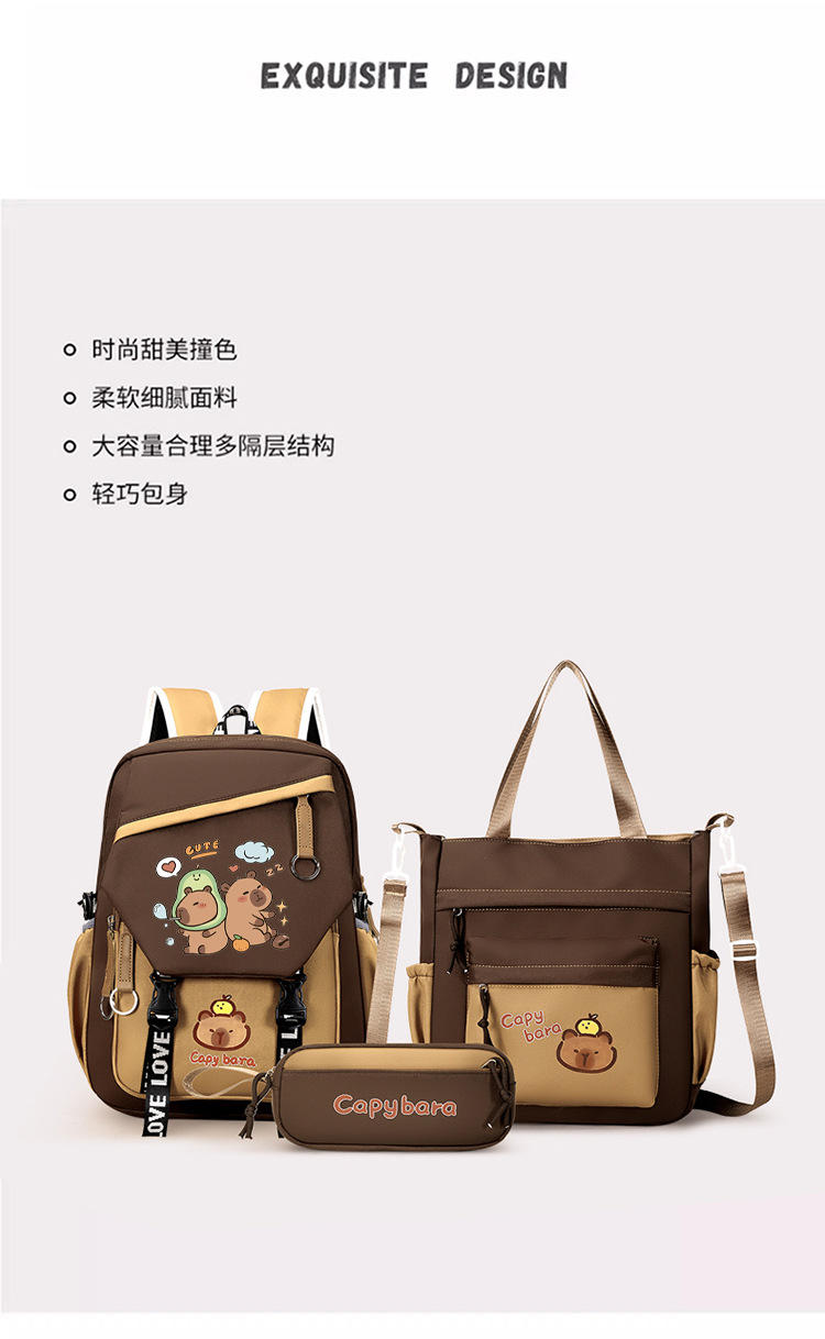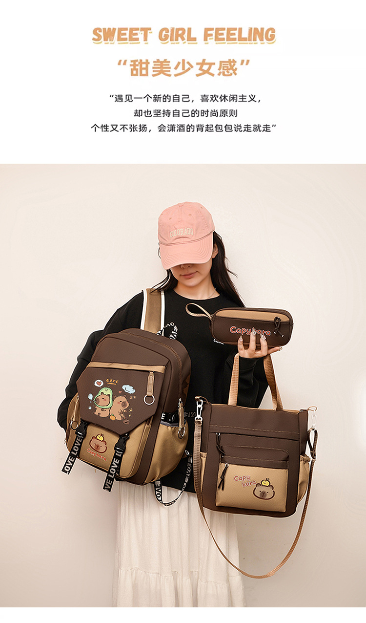 카피 발라 대용량 배낭 카피 바라 만화 학생 스쿨 백 크로스 바디 백 트램 백 연필 케이스 3 피스 세트