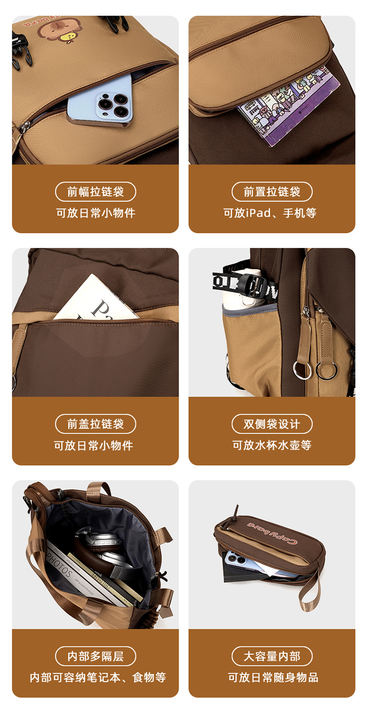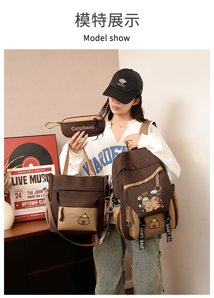 카피 발라 대용량 배낭 카피 바라 만화 학생 스쿨 백 크로스 바디 백 트램 백 연필 케이스 3 피스 세트스토어 가기