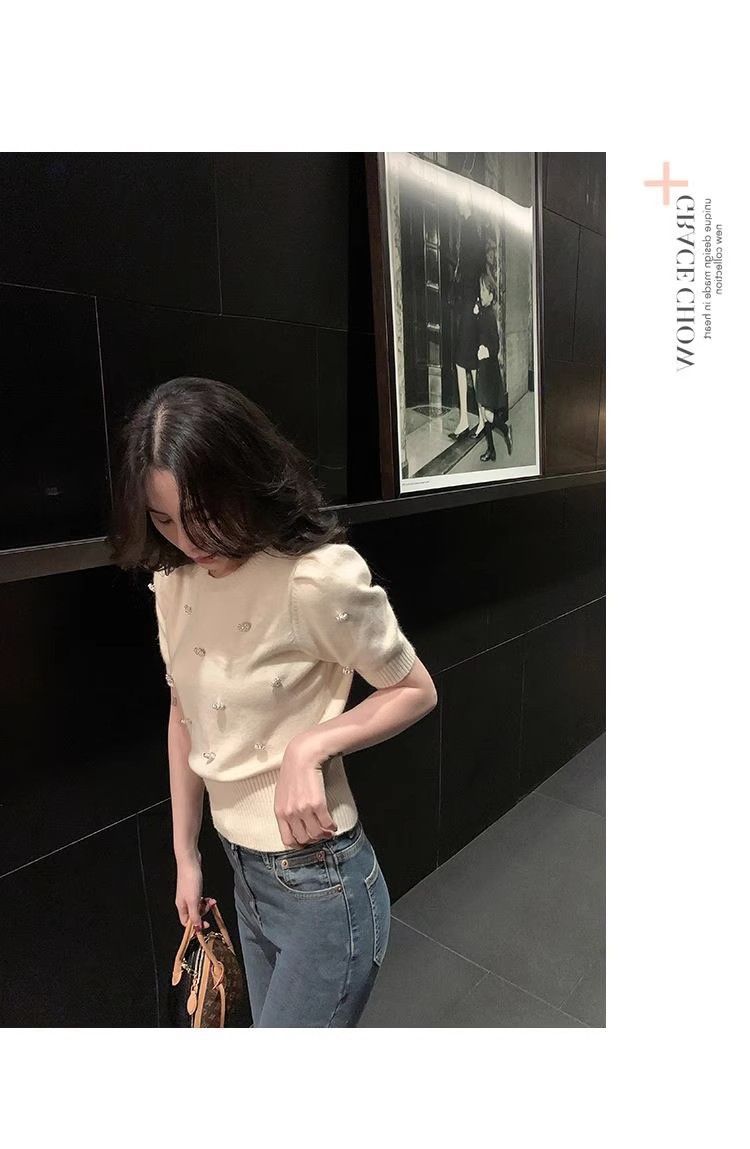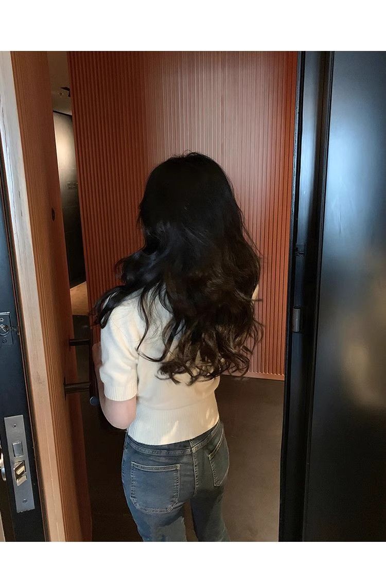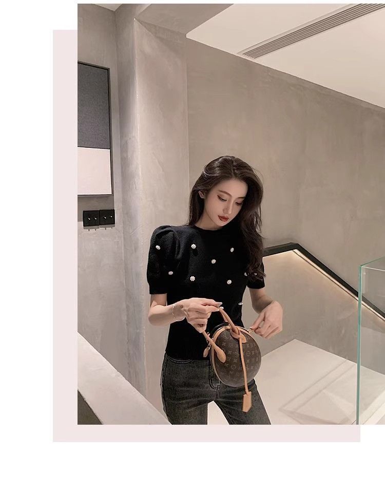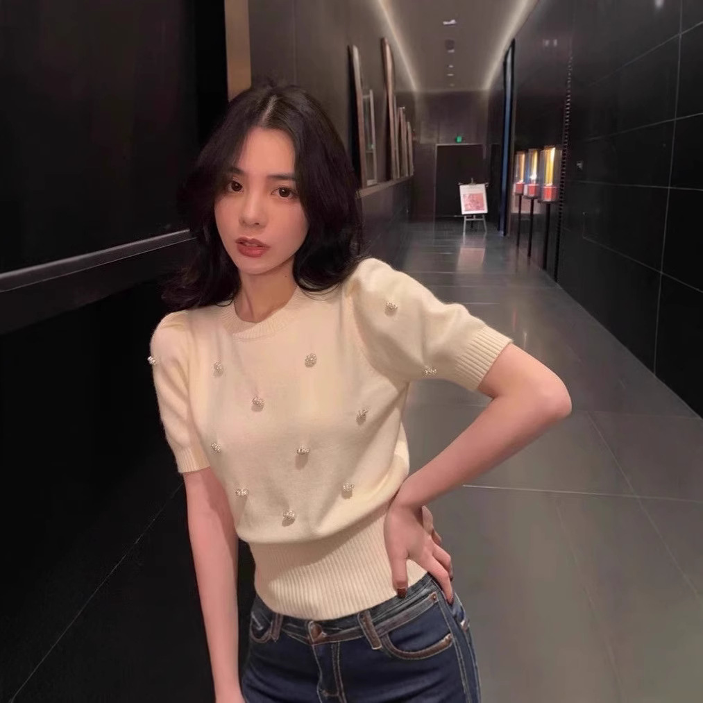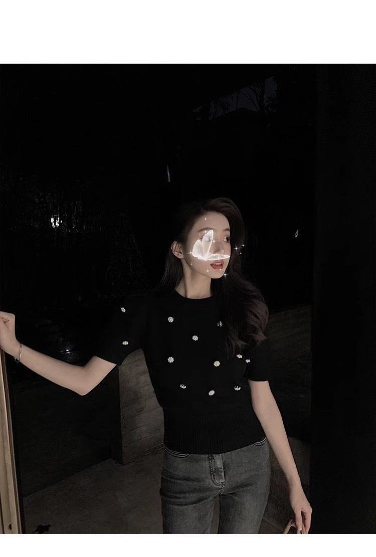 블랙 반팔 티셔츠 여성 2025 새로운 여름 얇은 홍콩 스타일 세련된 빈티지 순수한 욕망 니트 탑스토어 가기