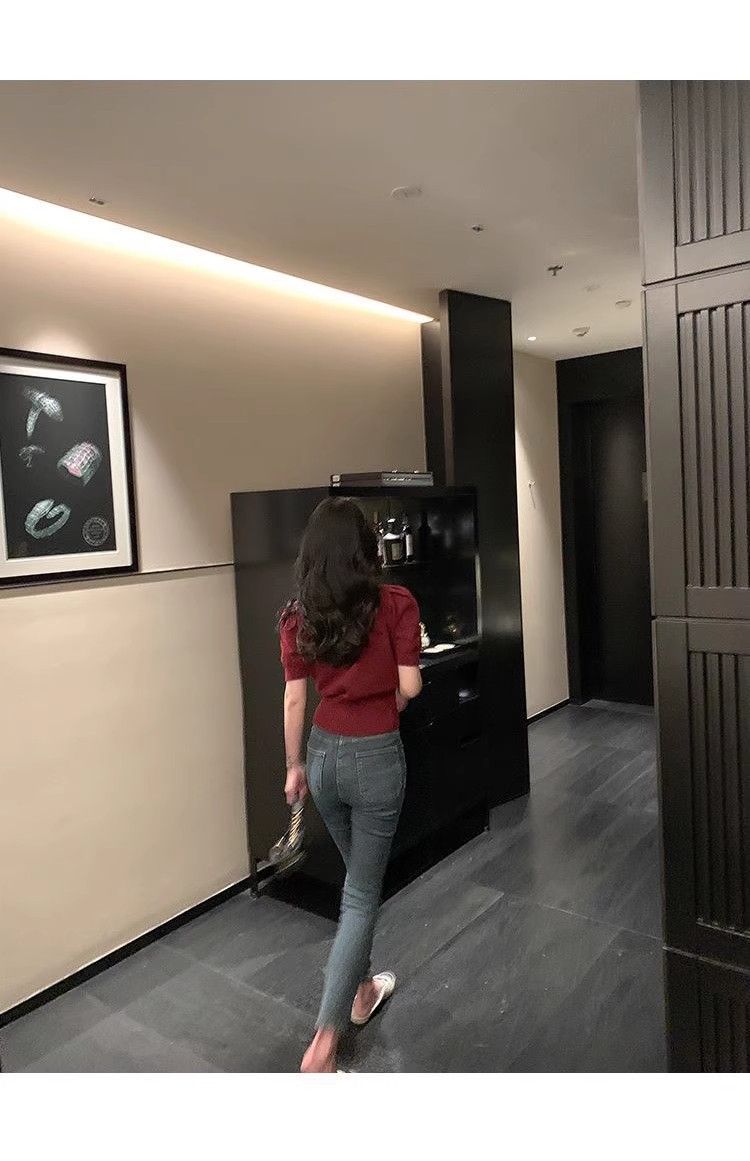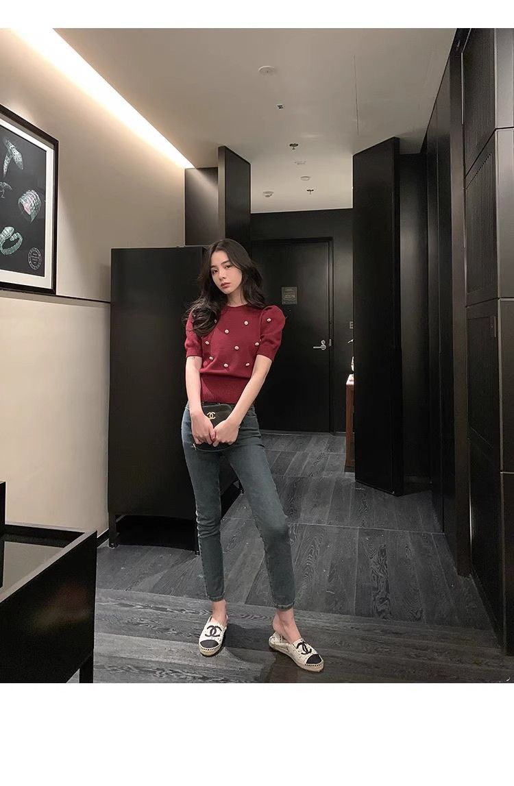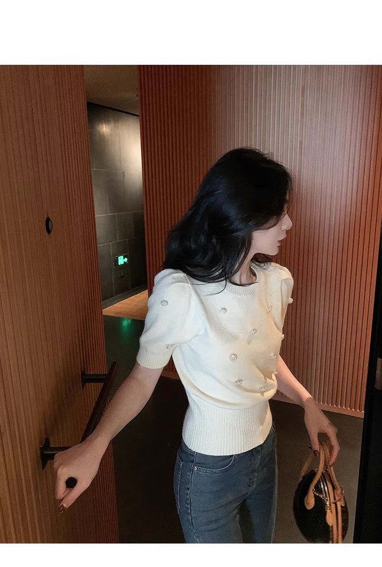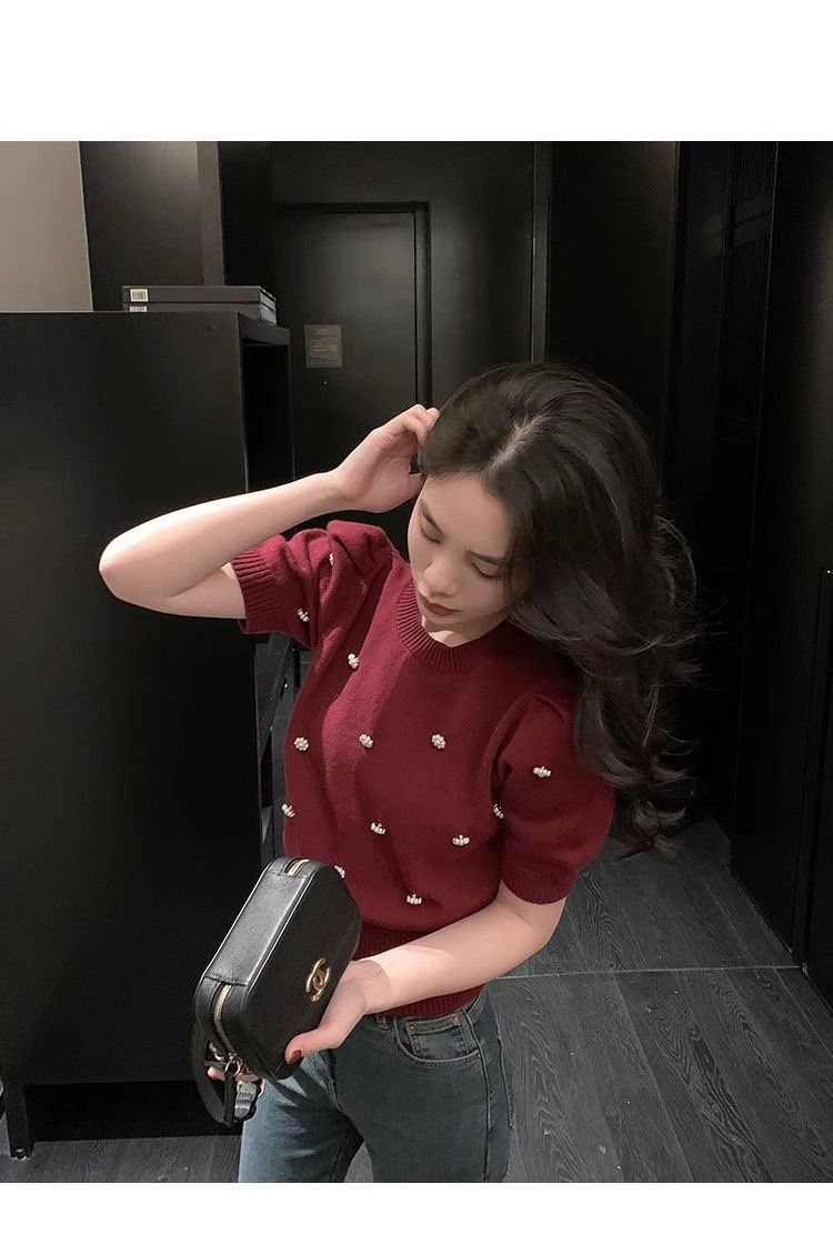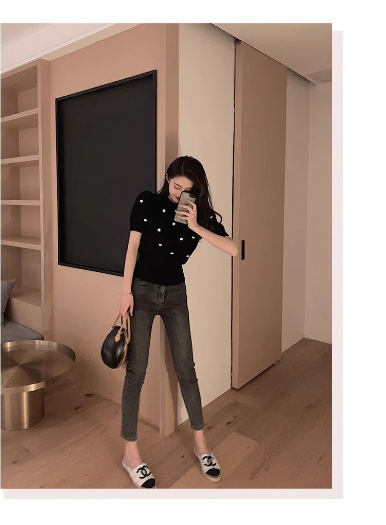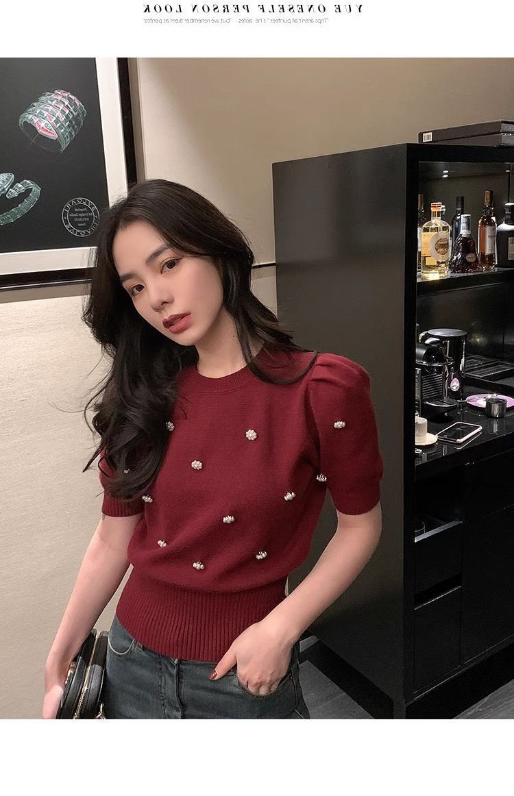 블랙 반팔 티셔츠 여성 2025 새로운 여름 얇은 홍콩 스타일 세련된 빈티지 순수한 욕망 니트 탑스토어 가기
