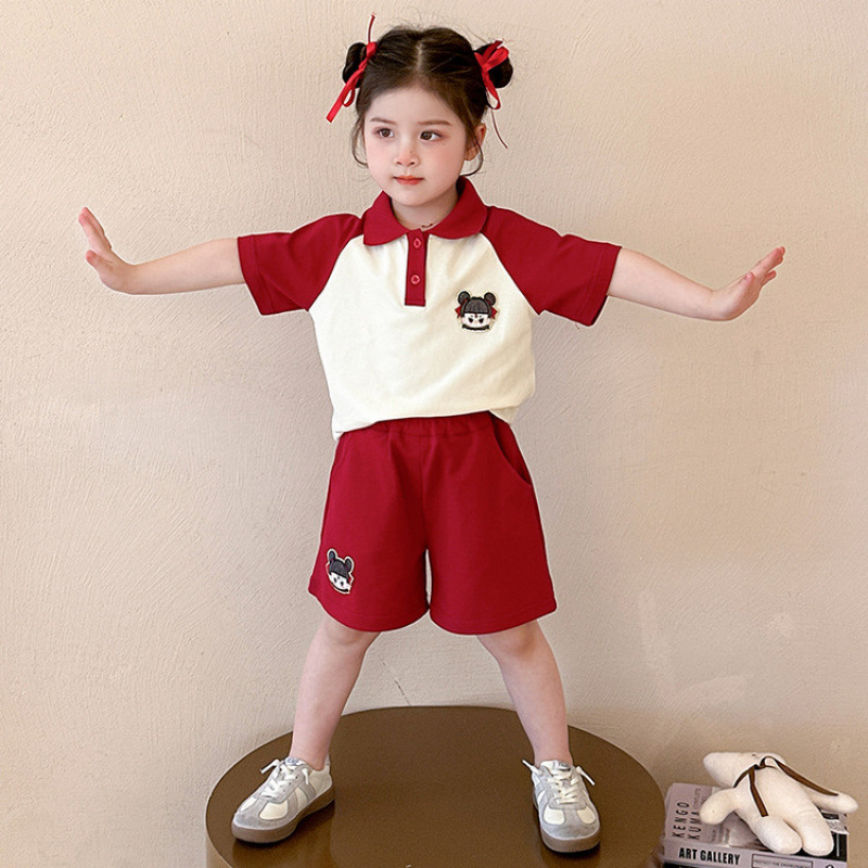 여자 여름 반팔 세트 2025 새로운 어린이 의류 아기 폴로 셔츠 반바지 스포츠 투피스 세트스토어 가기