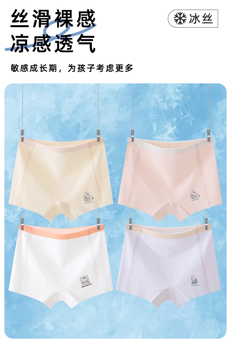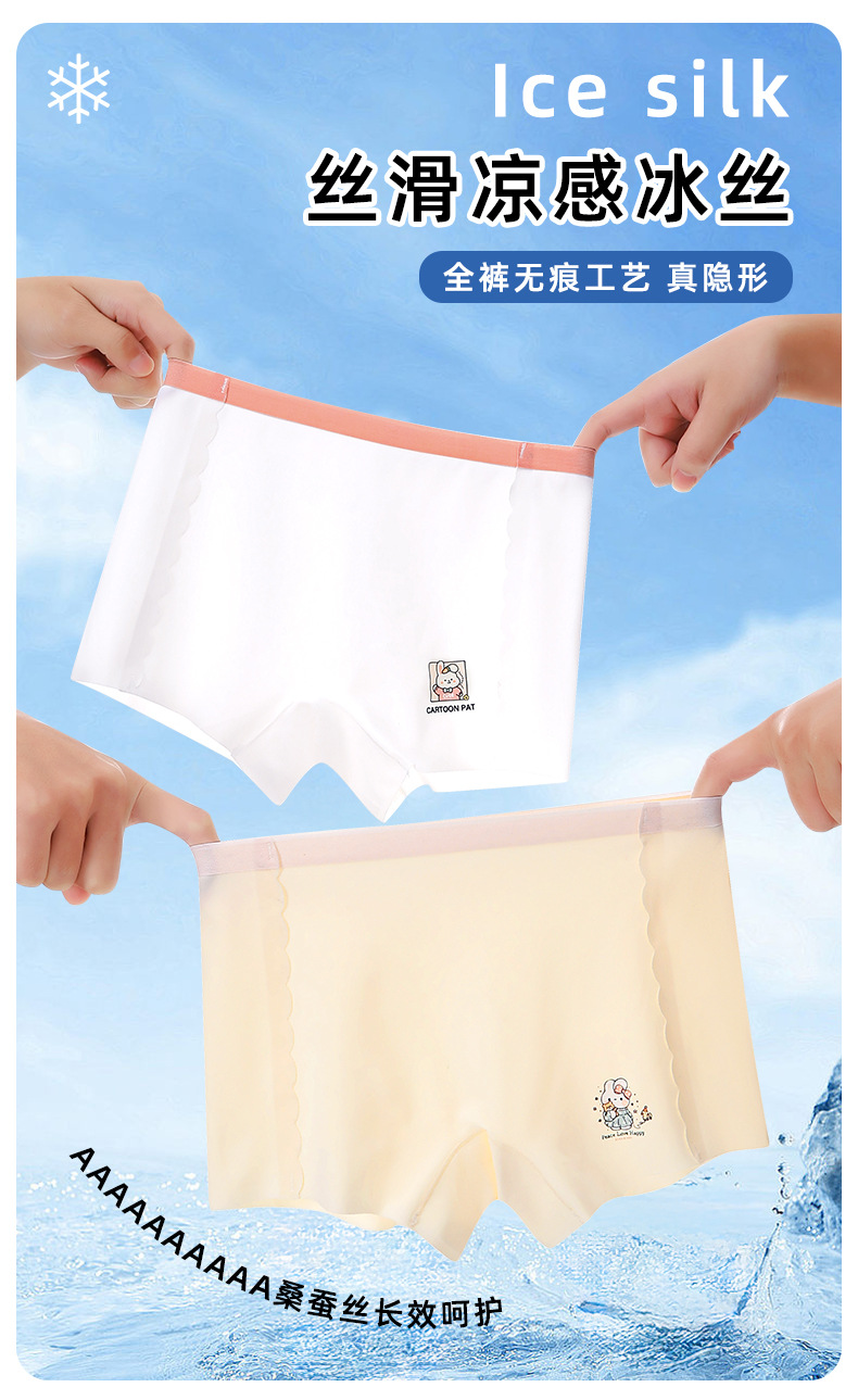 어린이 속옷 여아 아이스 실크 비 마킹 복서 통기성 어린이 중형 및 대형 어린이 복서 반바지 소녀 여름 삼각형