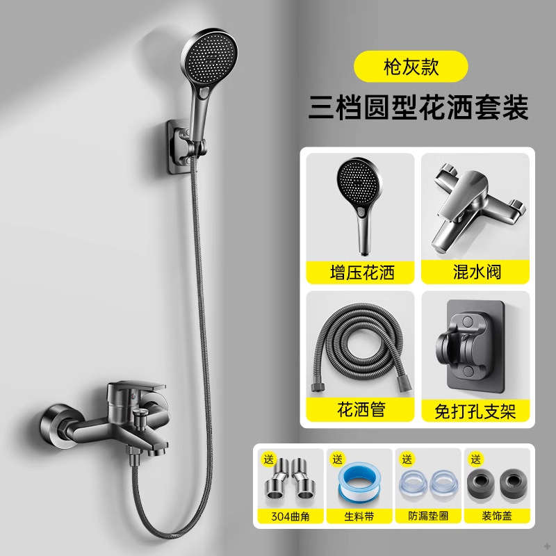 • 【둥근●Gun Ash] 리프팅 슈퍼차저 샤워 세트, 두꺼운 전체 구리, 30년 보증