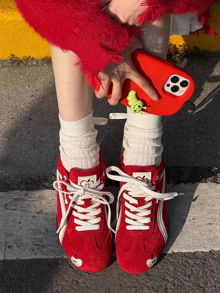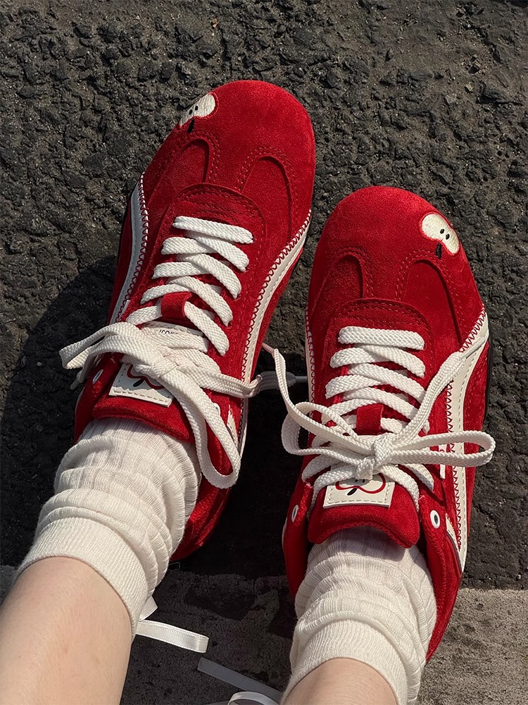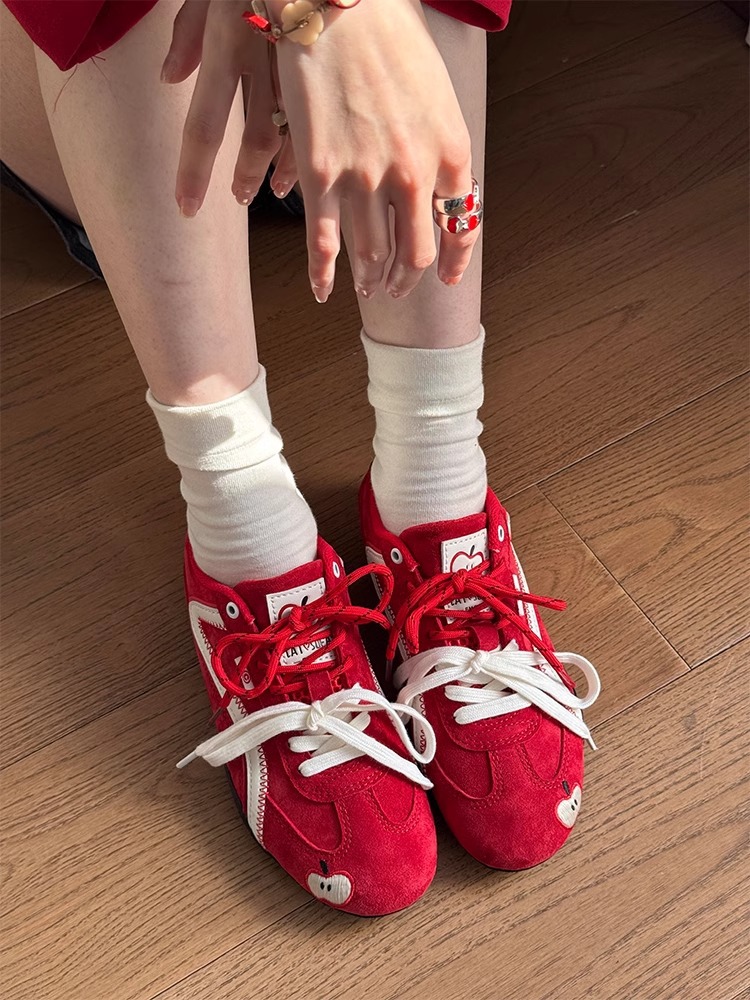 Cowhide 버전 ~ 레드 레트로 독일 훈련 신발 올매치 컬러 매칭 레이스 업 캐주얼 운동화 여성용 얇은 밑창 포레스트 검프 신발 여성 신발스토어 가기