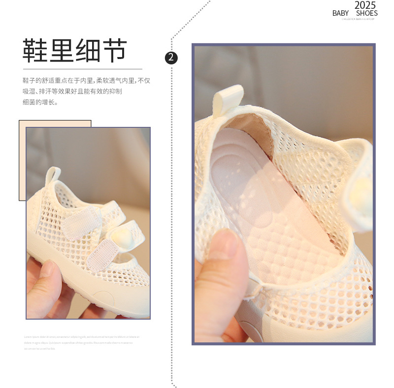 여름 아기 메쉬 비치 신발 아기 부드러운 단독 미끄럼 방지 공주 메쉬 신발 소녀 통기성 유아 신발 샌들