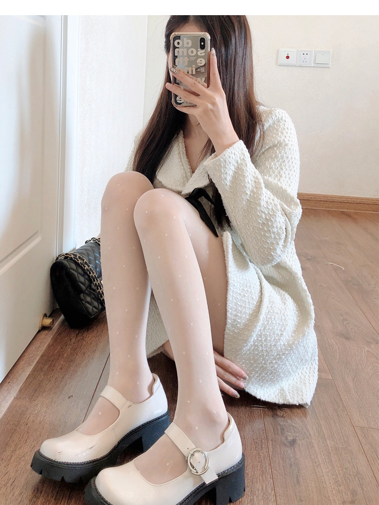 화이트 실크 스타킹 여자 여름 얇은 달콤한 일본 JK 우유 화이트 폴카 도트 팬티 스타킹 폴카 도트 블랙 실크 올매치 베이스 양말스토어 가기