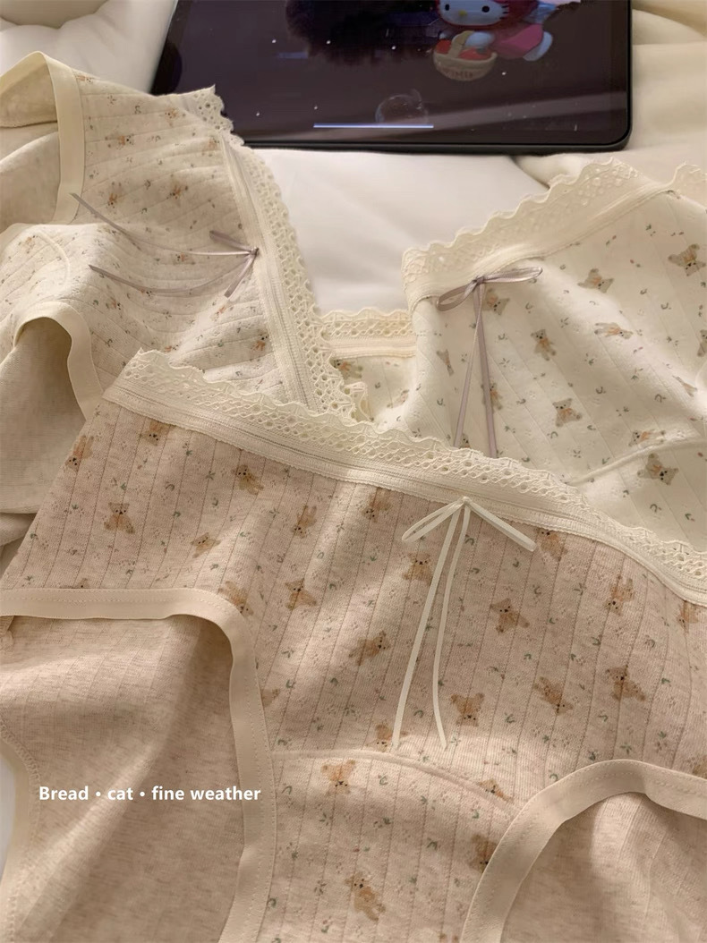 "Sweetheart Bear" 항균 양조 크로 치 목회 스타일 귀여운 소녀 면 속옷 10A 항균 삼각형 머리