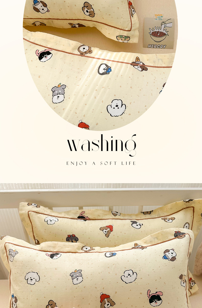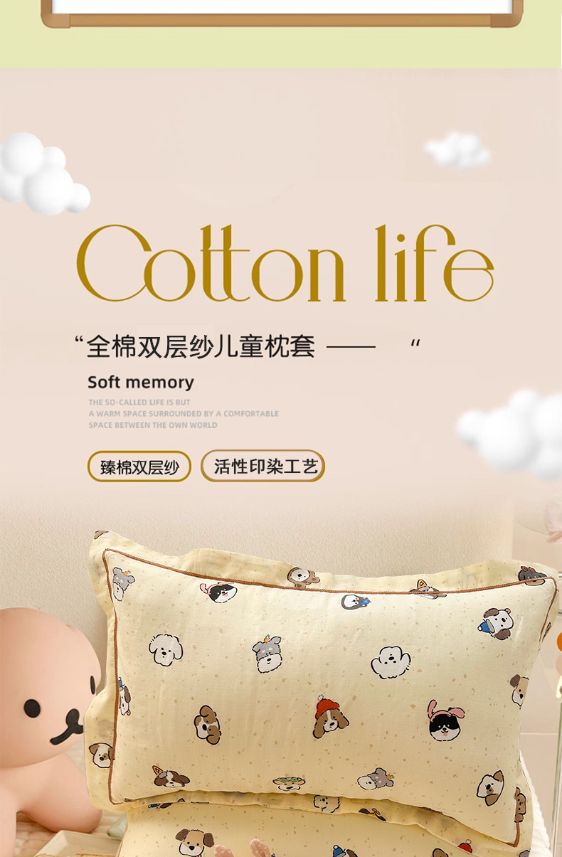 클래스 A 면 더블 레이어 거즈 베개 커버 만화 귀여운 어린이 부모-자식 엄마와 아기 순수 면 거즈 사계절 통기성 베개 커버스토어 가기