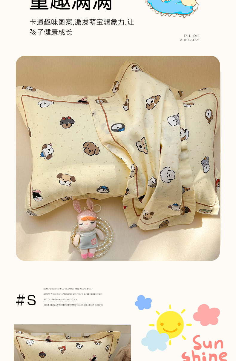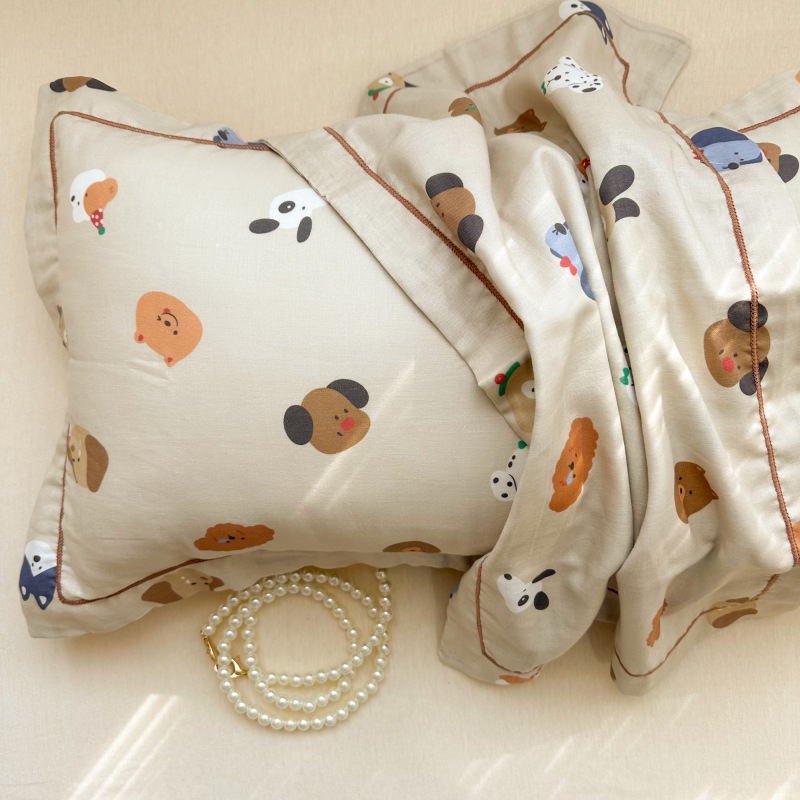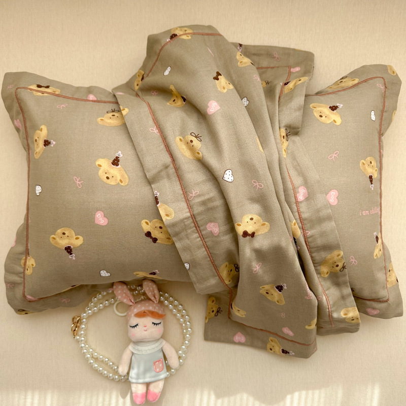 클래스 A 면 더블 레이어 거즈 베개 커버 만화 귀여운 어린이 부모-자식 엄마와 아기 순수 면 거즈 사계절 통기성 베개 커버