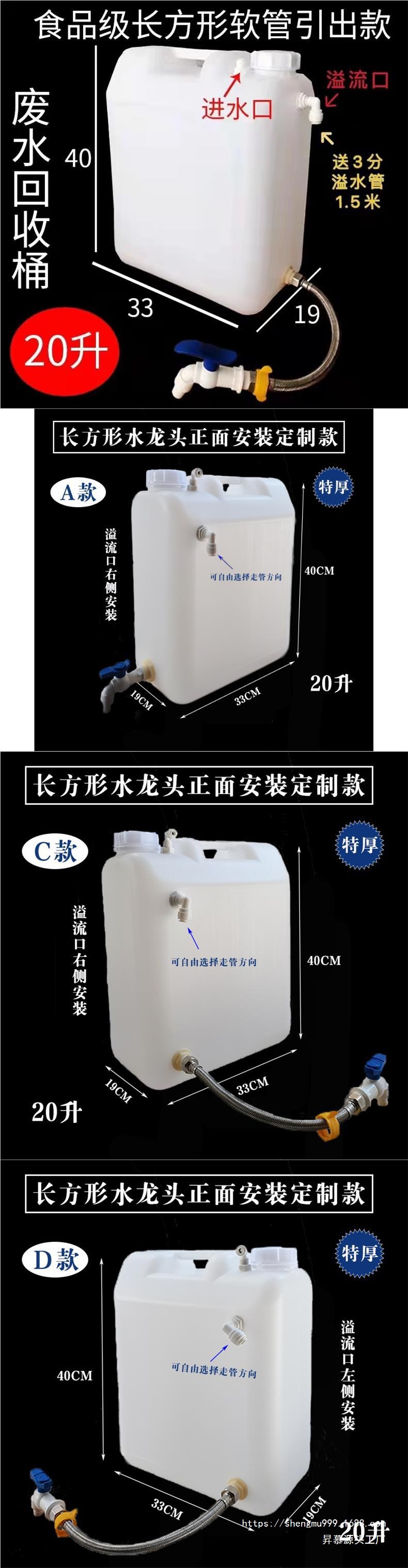 정수기 폐수 재활용 장치 식품 등급 가정용 플라스틱 물 저장통(수도꼭지 포함) 야외 자동차 물통