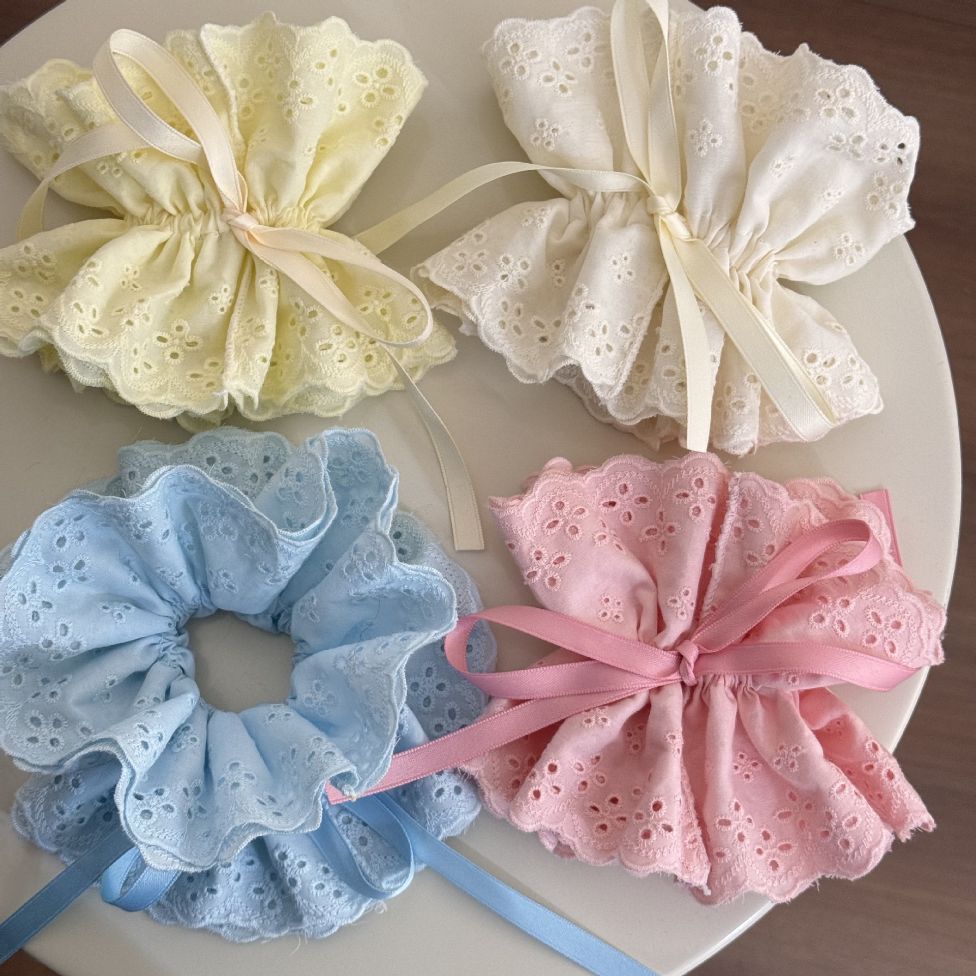 핑크 4 층 레이스 드로우 스트링 대형 Intestine 헤어 링 여성의 달콤한 귀여운 볼 헤어 로프 부드러운 넥타이 헤어 플라워스토어 가기