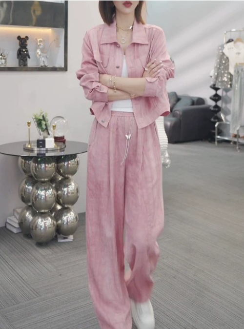 여성을위한 간단한 패션 캐주얼 정장 2025 새로운 여름 자외선 차단 의류 느슨한 슬리밍 외국 스타일 재킷 + 바지