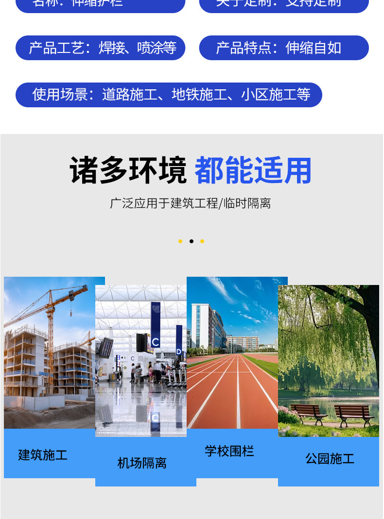 텔레스코픽 가드레일 건설 유지 보수 경고 이동식 텔레스코픽 울타리 전력 도시 격리 안전 가드레일