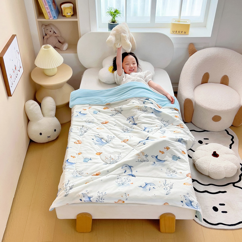 2025 새로운 어린이 니트 여름 이불 쿨 여름 이불 양면 유치원 여름 이불 에어컨 이불 코어