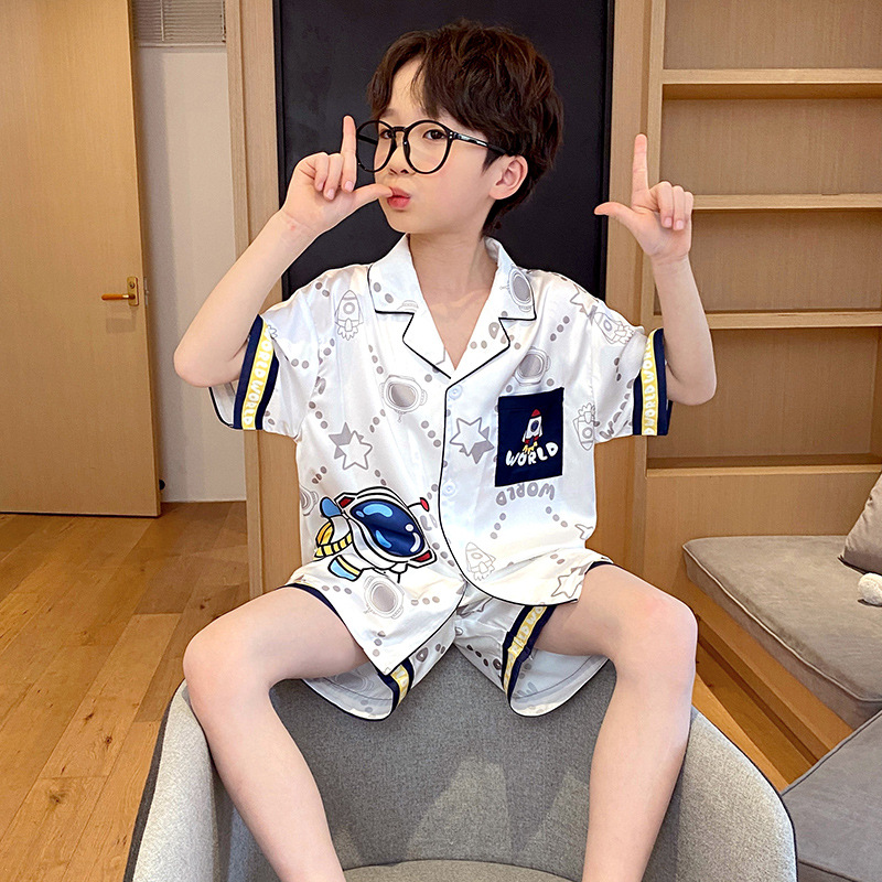 2025 새로운 소년 잠옷 어린이 여름 얼음 실크 반팔 여름 스타일 청소년 큰 어린이 소년 홈 의류 Dropshipping스토어 가기