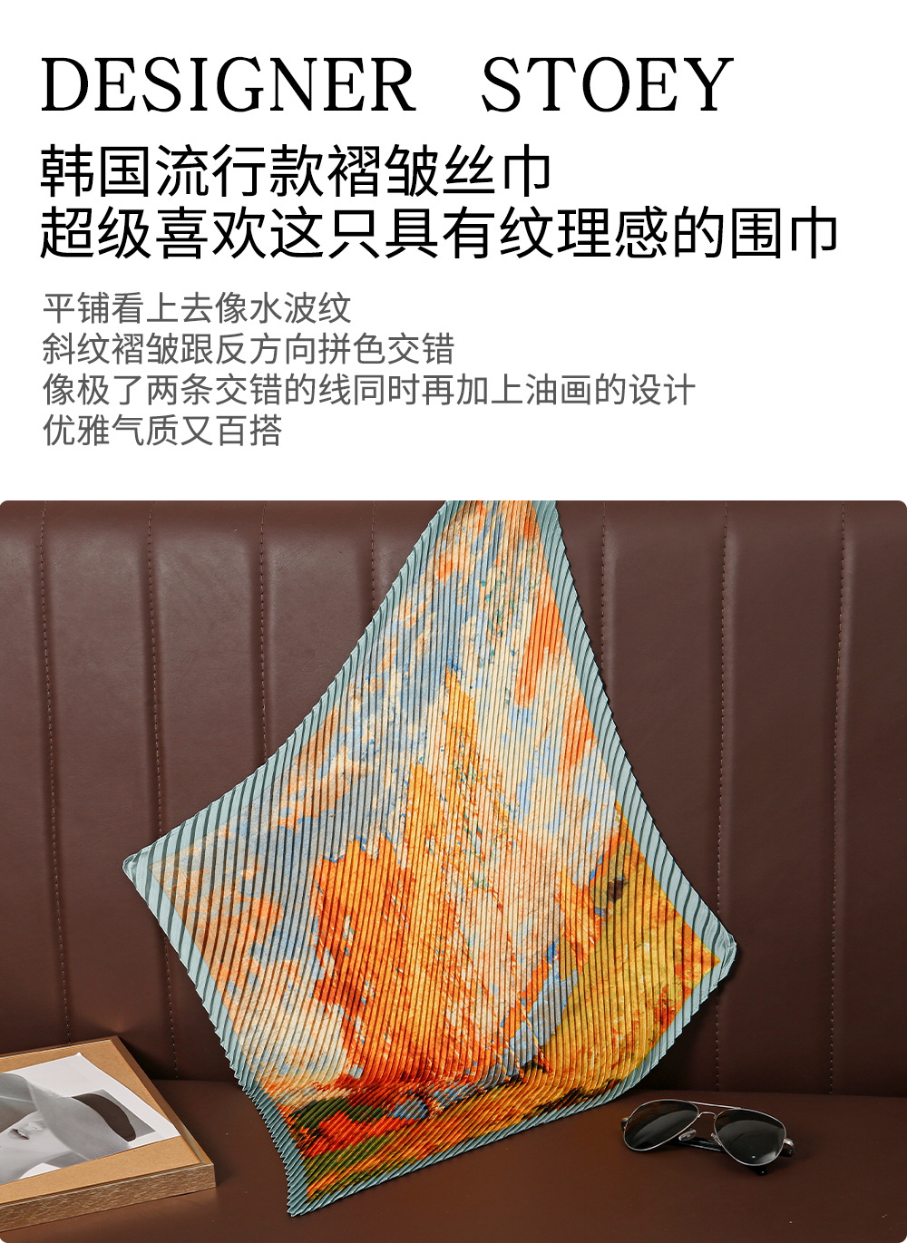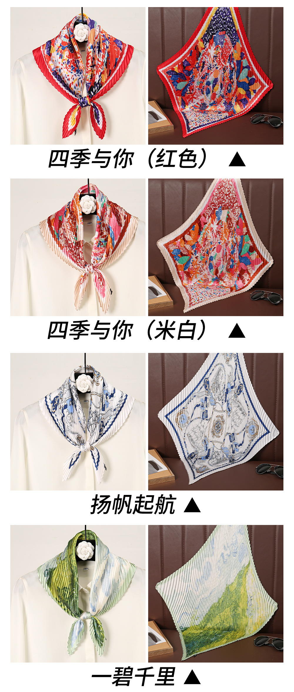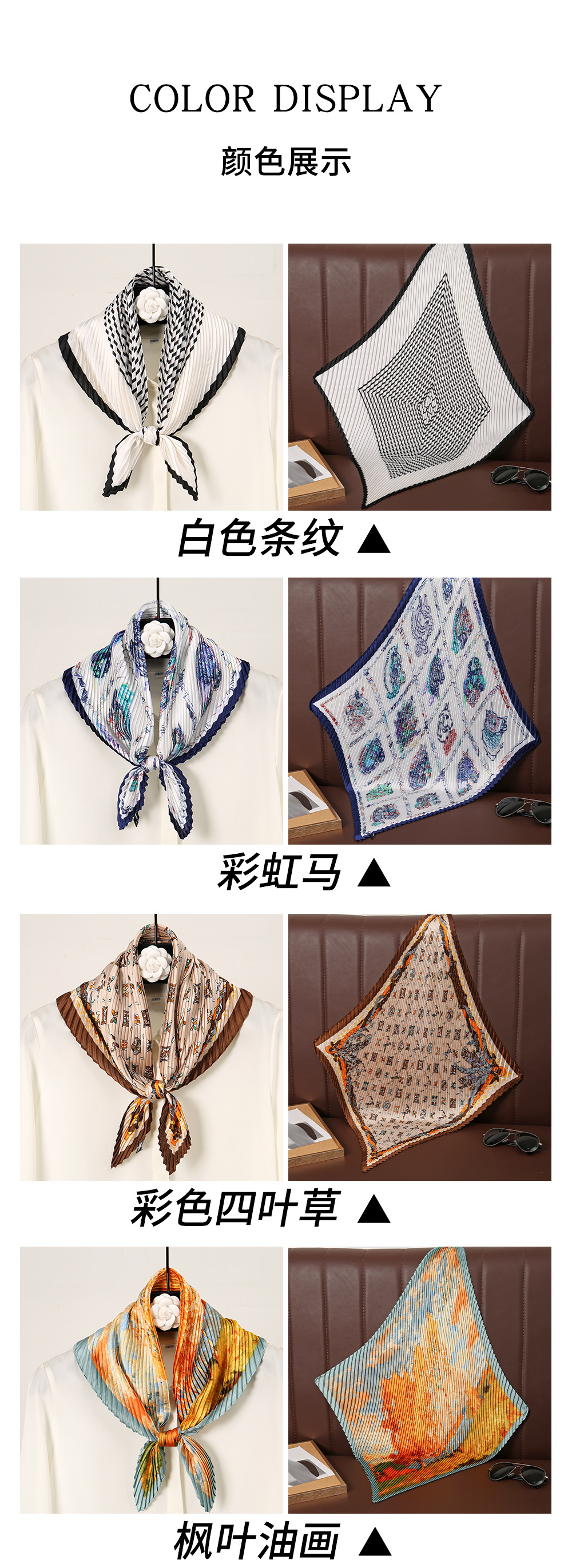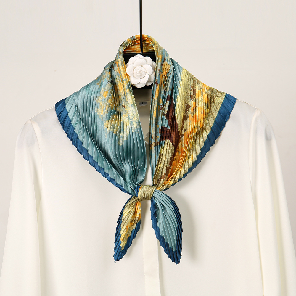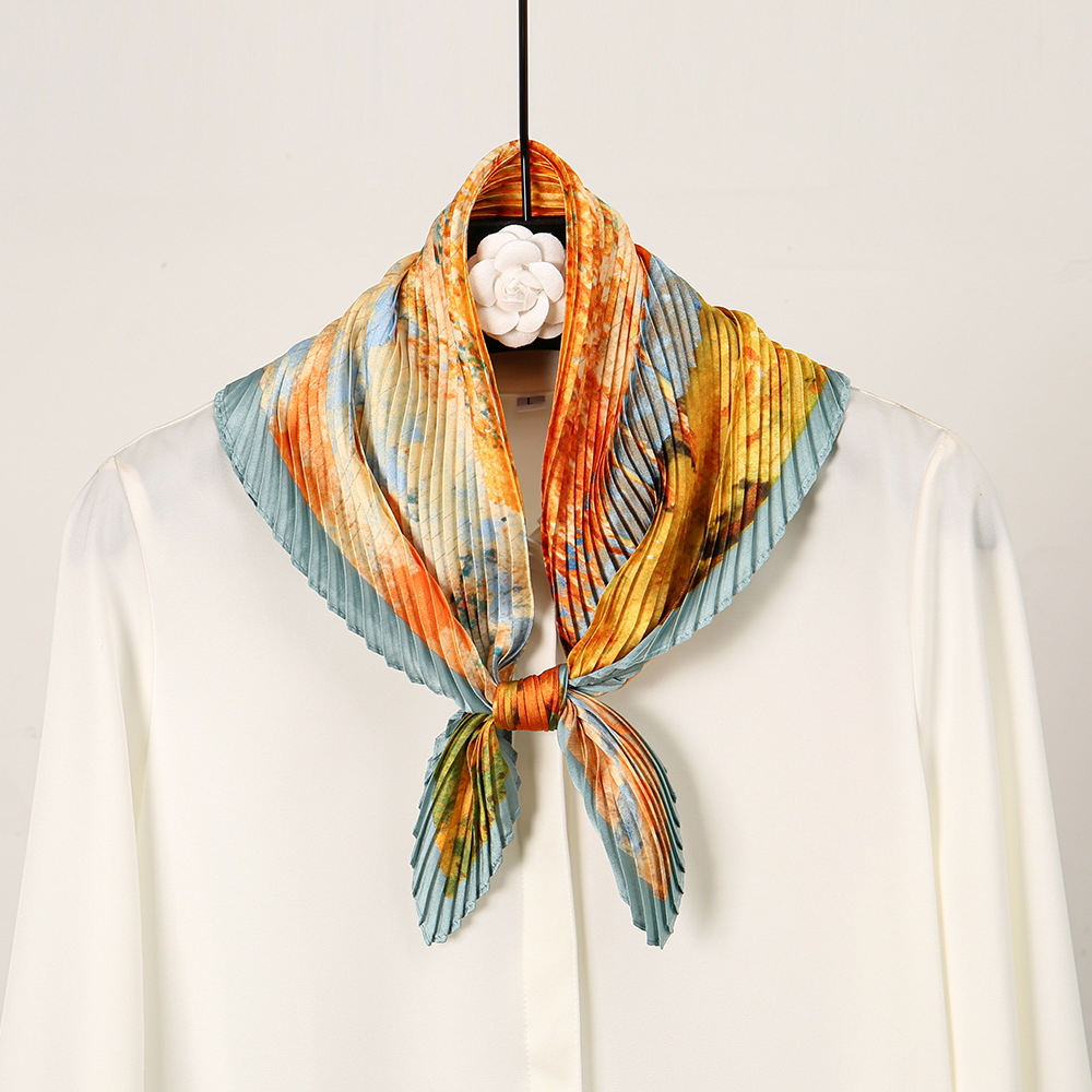 트렌디하고 멋진 디자인 70 주름 실크 스카프 작은 사각형 스카프 고급 비충돌 스타일 여성 전문 스카프 주름 스카프 도매