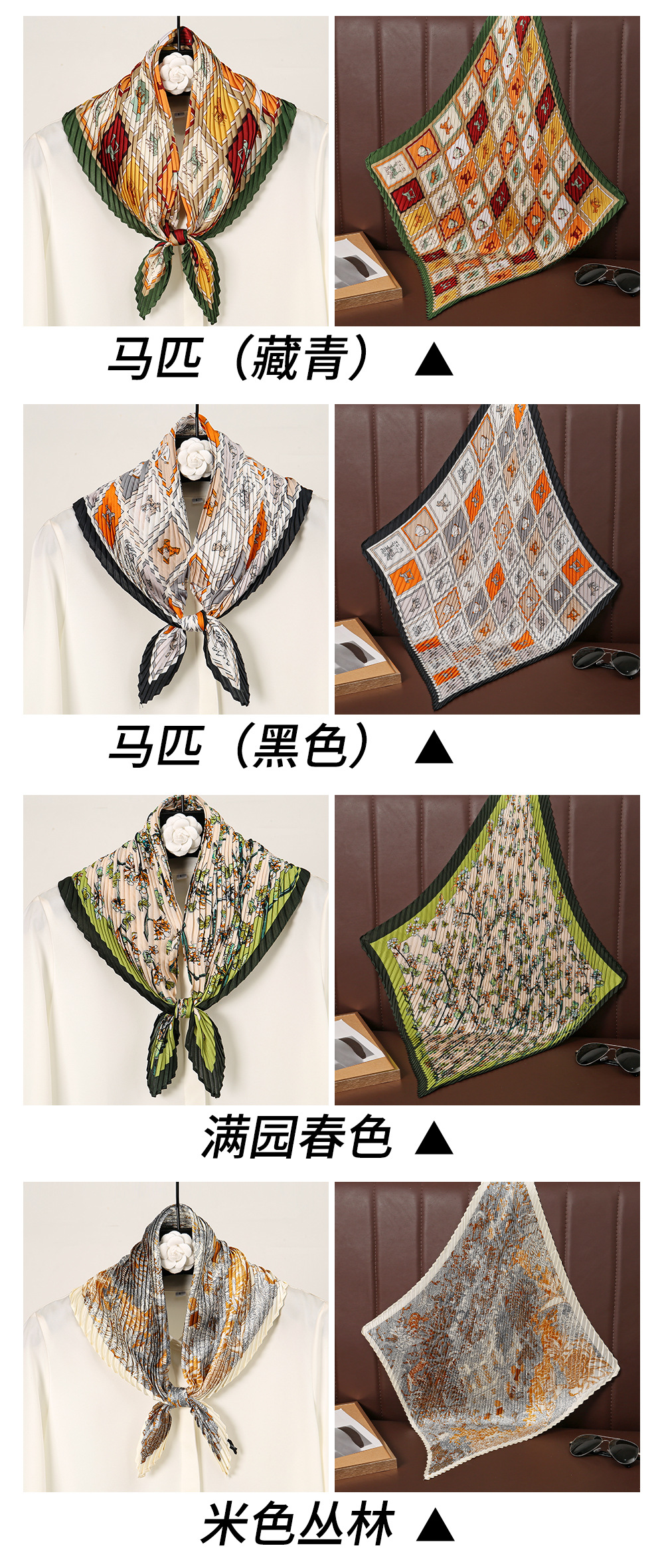 트렌디하고 멋진 디자인 70 주름 실크 스카프 작은 사각형 스카프 고급 비충돌 스타일 여성 전문 스카프 주름 스카프 도매스토어 가기