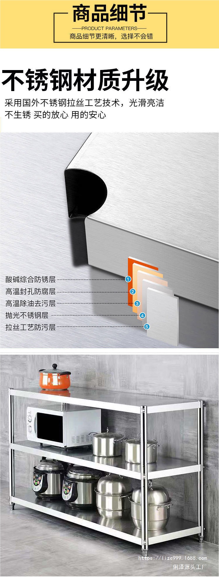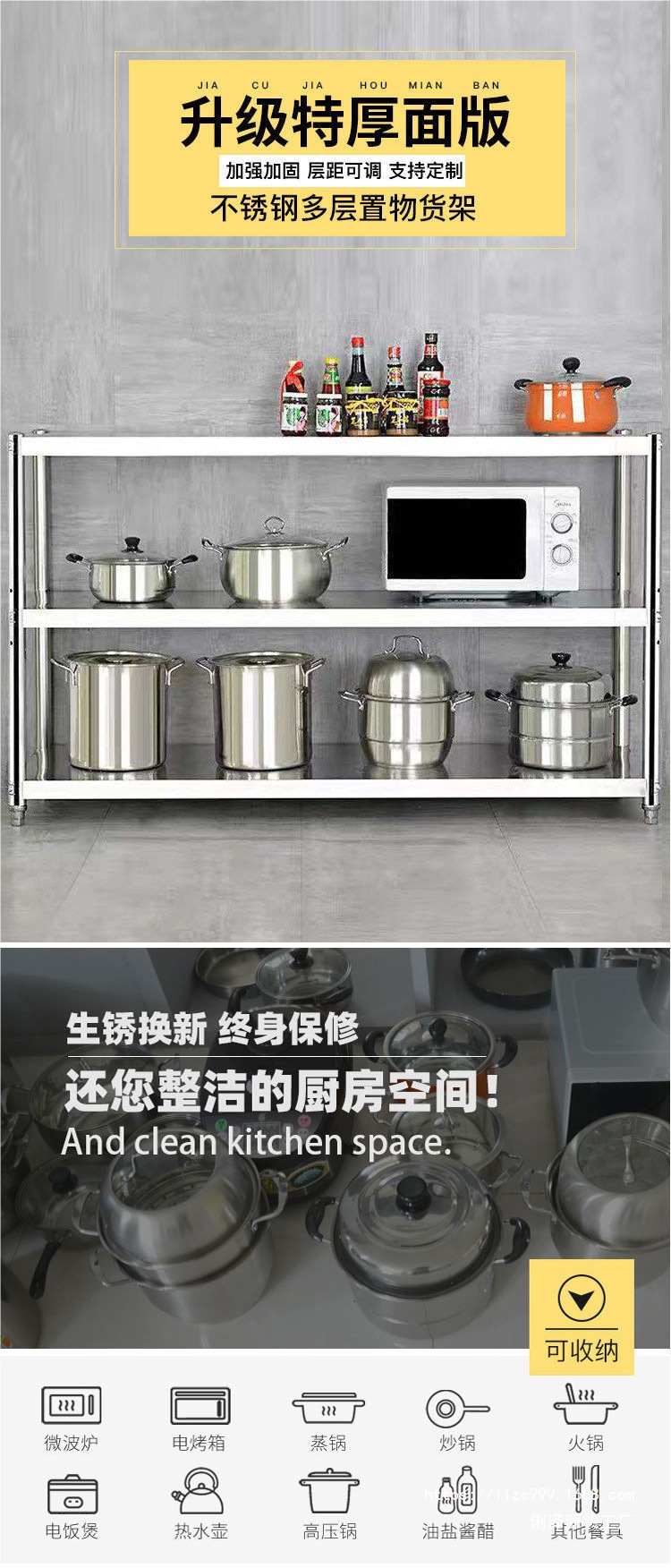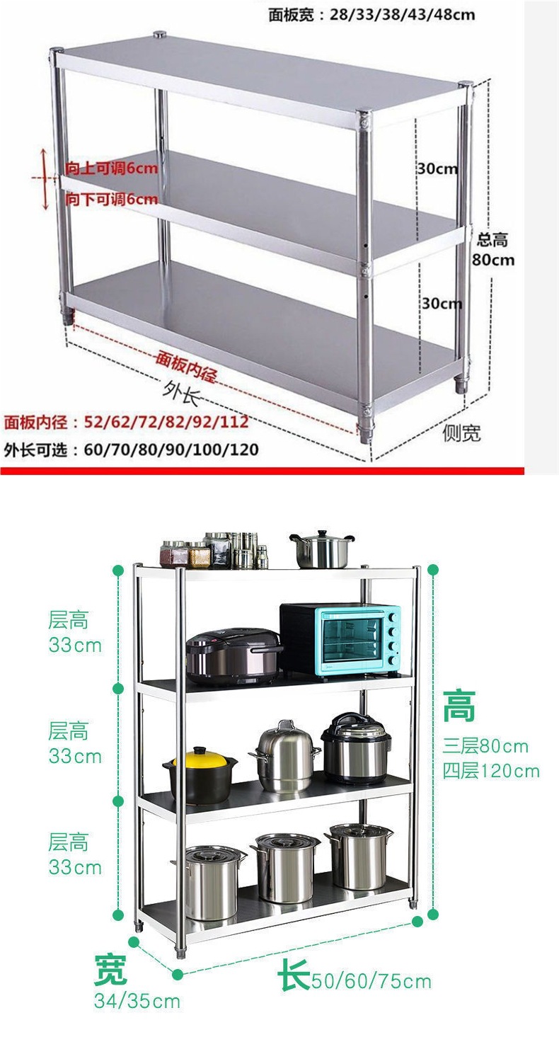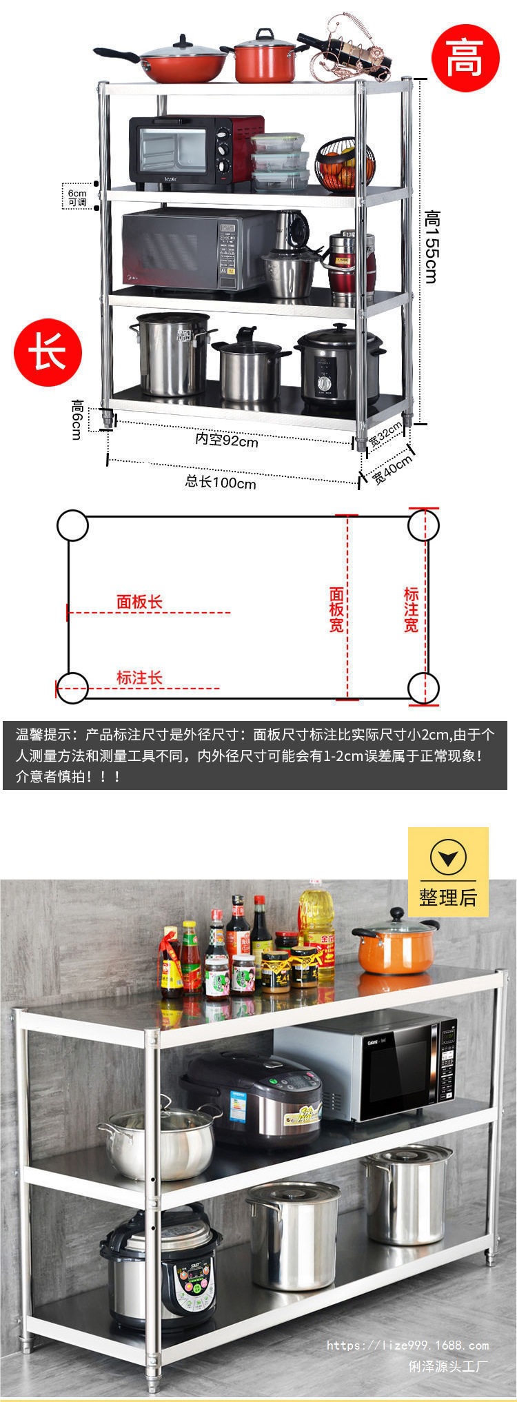 두꺼운 주방 저장 랙 바닥 스테인레스 스틸 다층 가정용 전자 레인지 오븐 저장 랙 보관 포트 Hua Geng스토어 가기