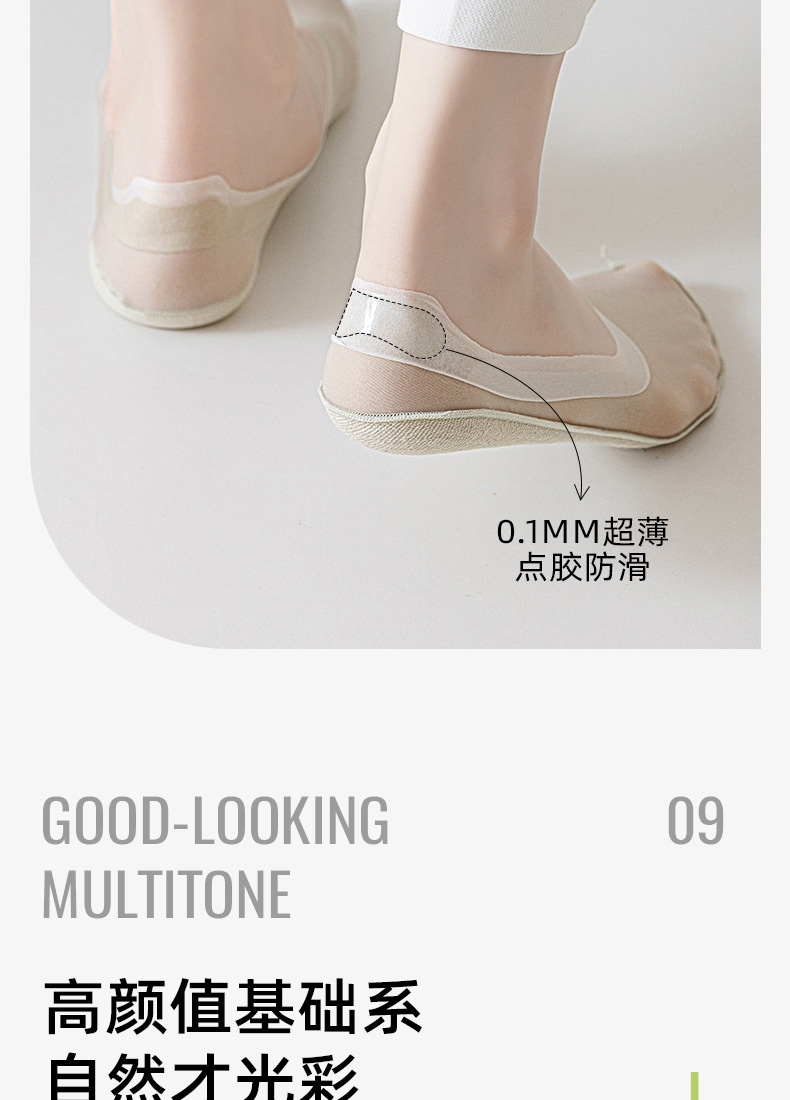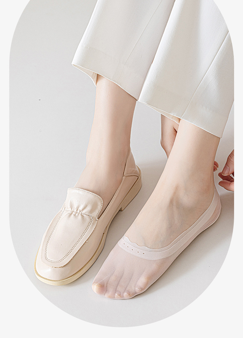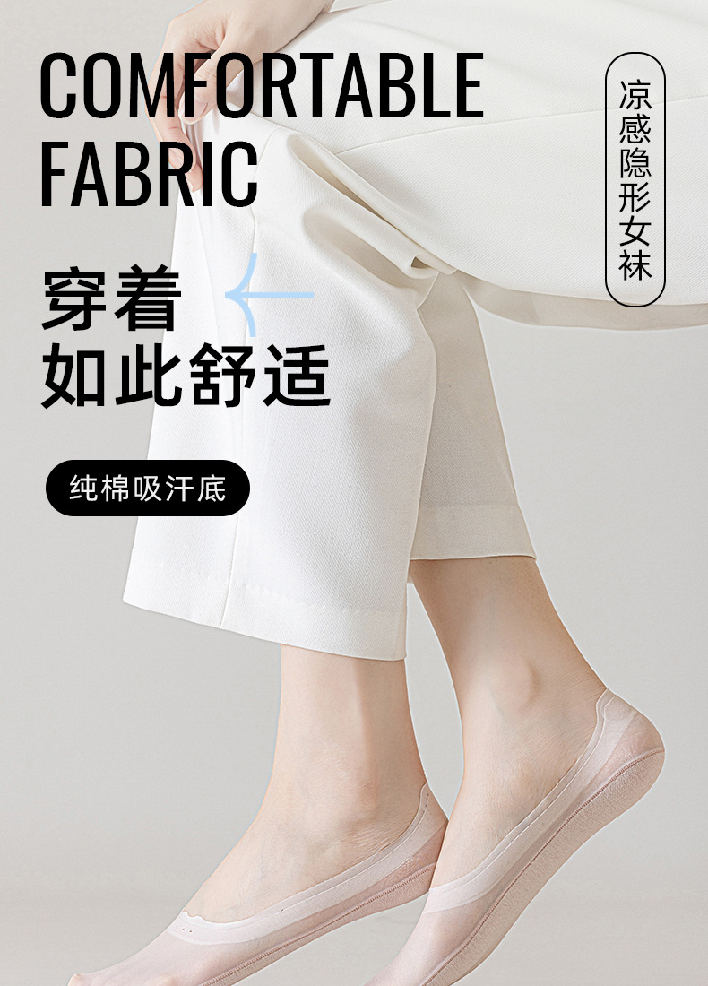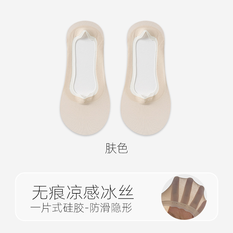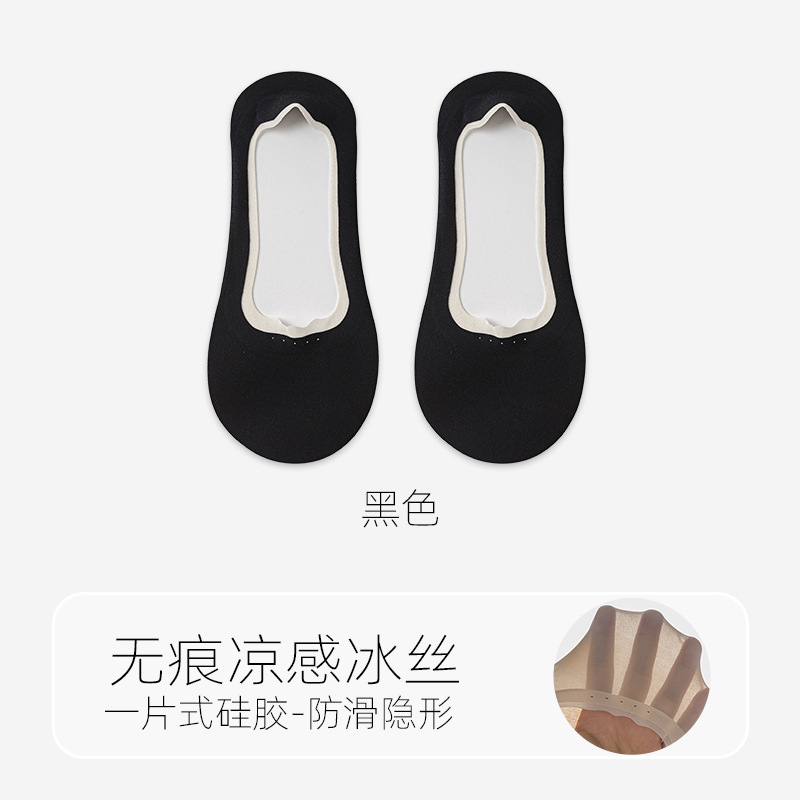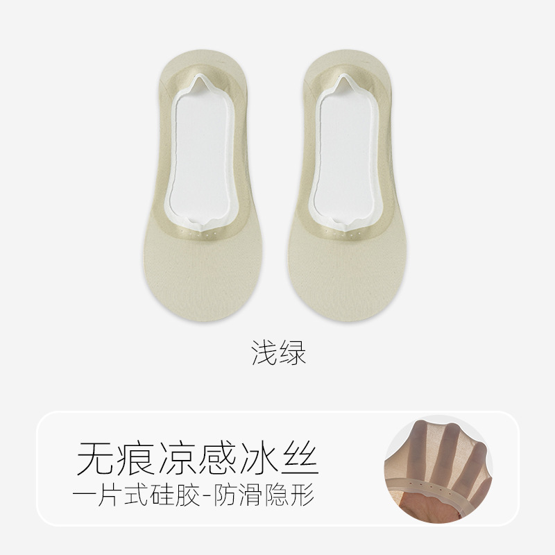 봄 여름 여성용 아이스 실크 보이지 않는 양말, 얇은 땀 흡수 및 통기성 순면 바닥 실리콘 미끄럼 방지, 떨어지지 않는 얕은 입 보트 양말스토어 가기