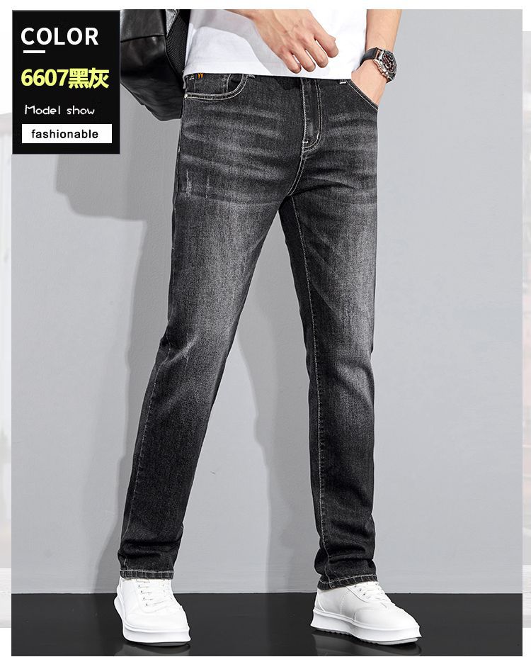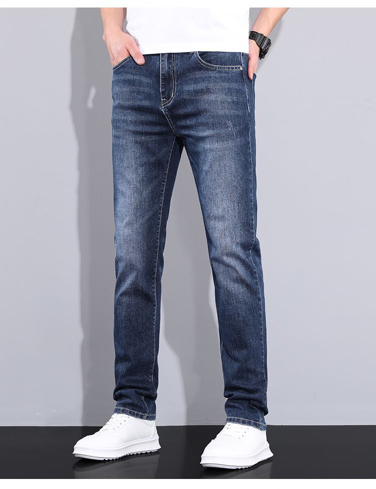 세탁 된 내마모성 2025 뉴 청바지 남자 하이 엔드 스트레치 바지 캐주얼 올 매치 바지 스트레이트 레그 바지스토어 가기