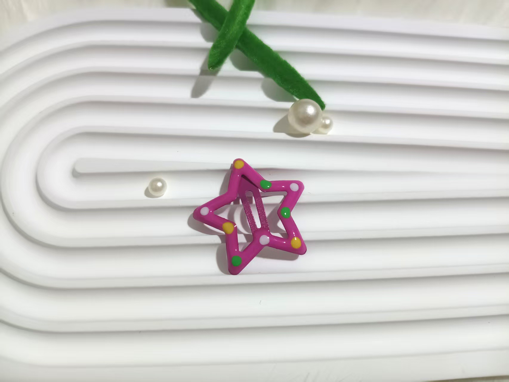 • 폴카 도트 별 머리핀 라이트 그린