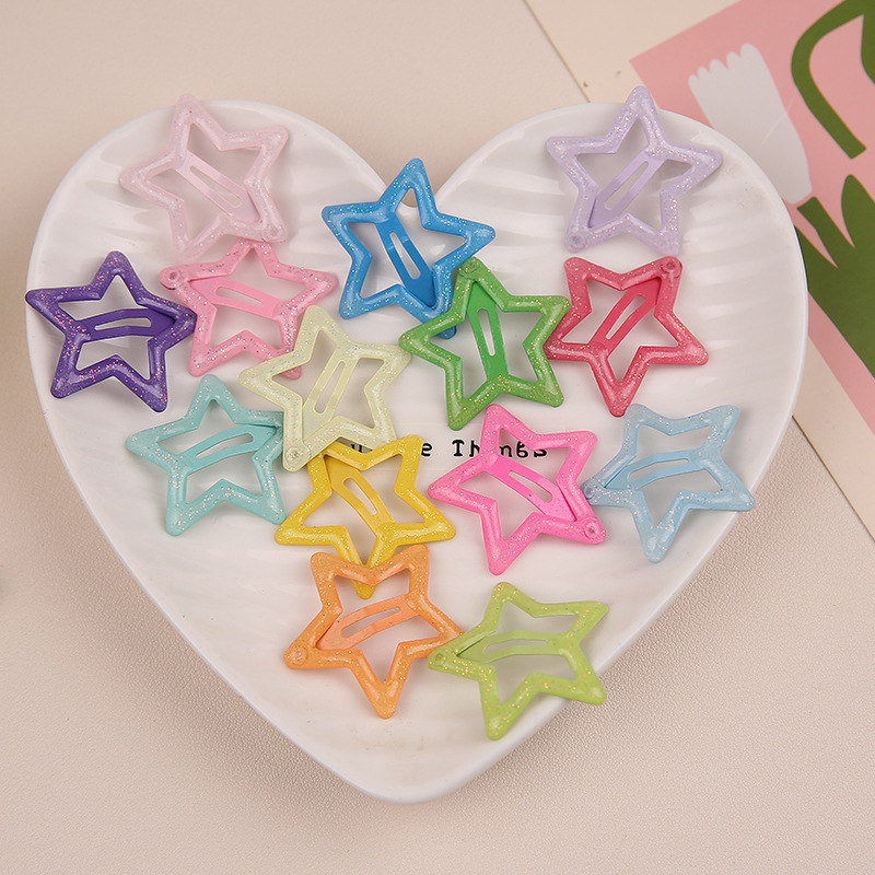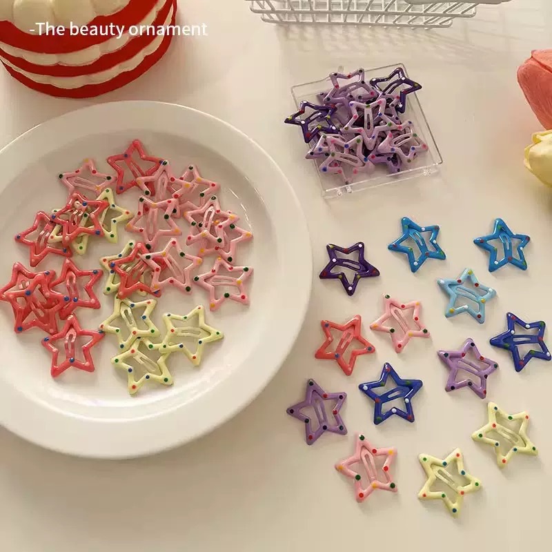 Y2k 도파민 스타 머리핀 귀여운 소녀 다섯개 별 머리핀 핀 캔디 컬러 머리핀 bb 클립 앞머리 클립