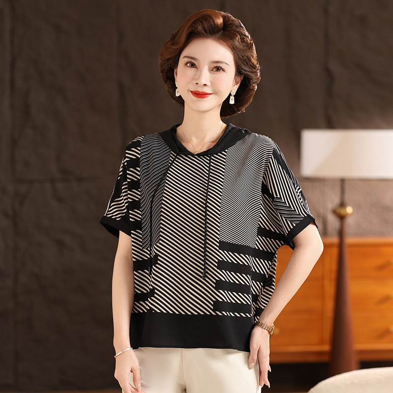 수정 된 플러스 사이즈 캐주얼 쇼트 실크 탑 여름 풀오버 스웨터 티셔츠 여름 여성을위한 올 매치 후드 탑스토어 가기