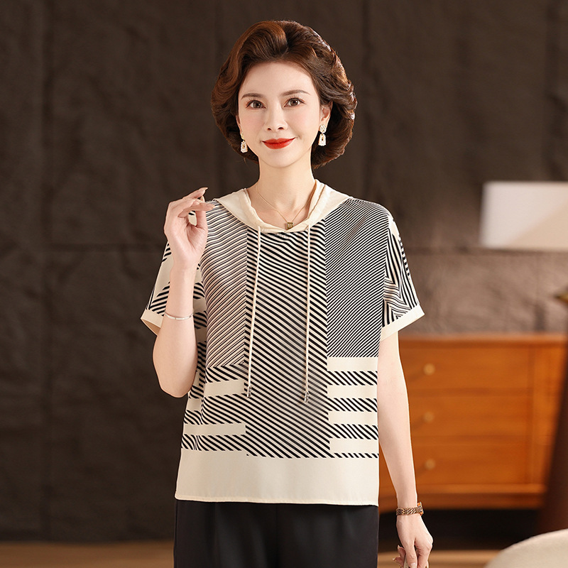 수정 된 플러스 사이즈 캐주얼 쇼트 실크 탑 여름 풀오버 스웨터 티셔츠 여름 여성을위한 올 매치 후드 탑