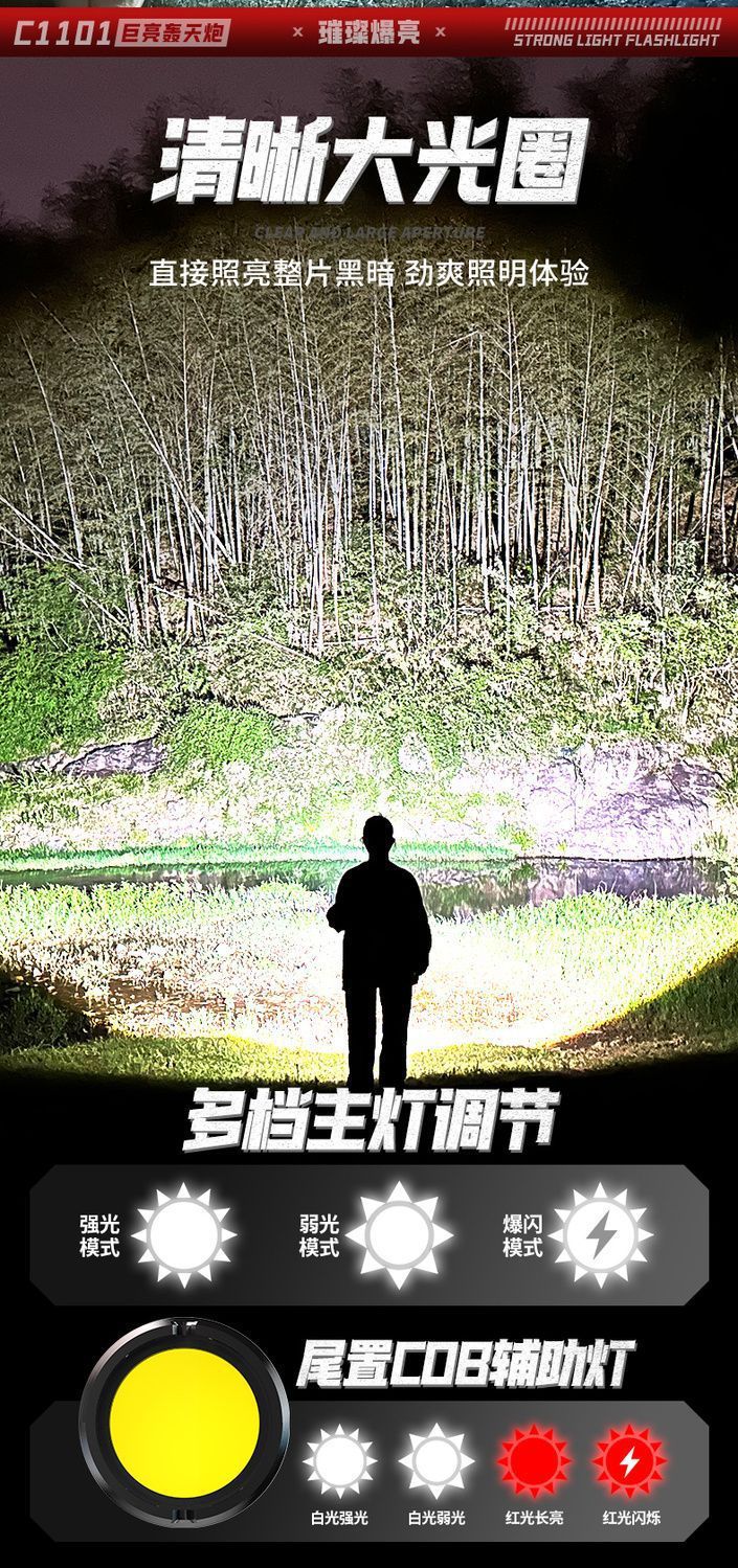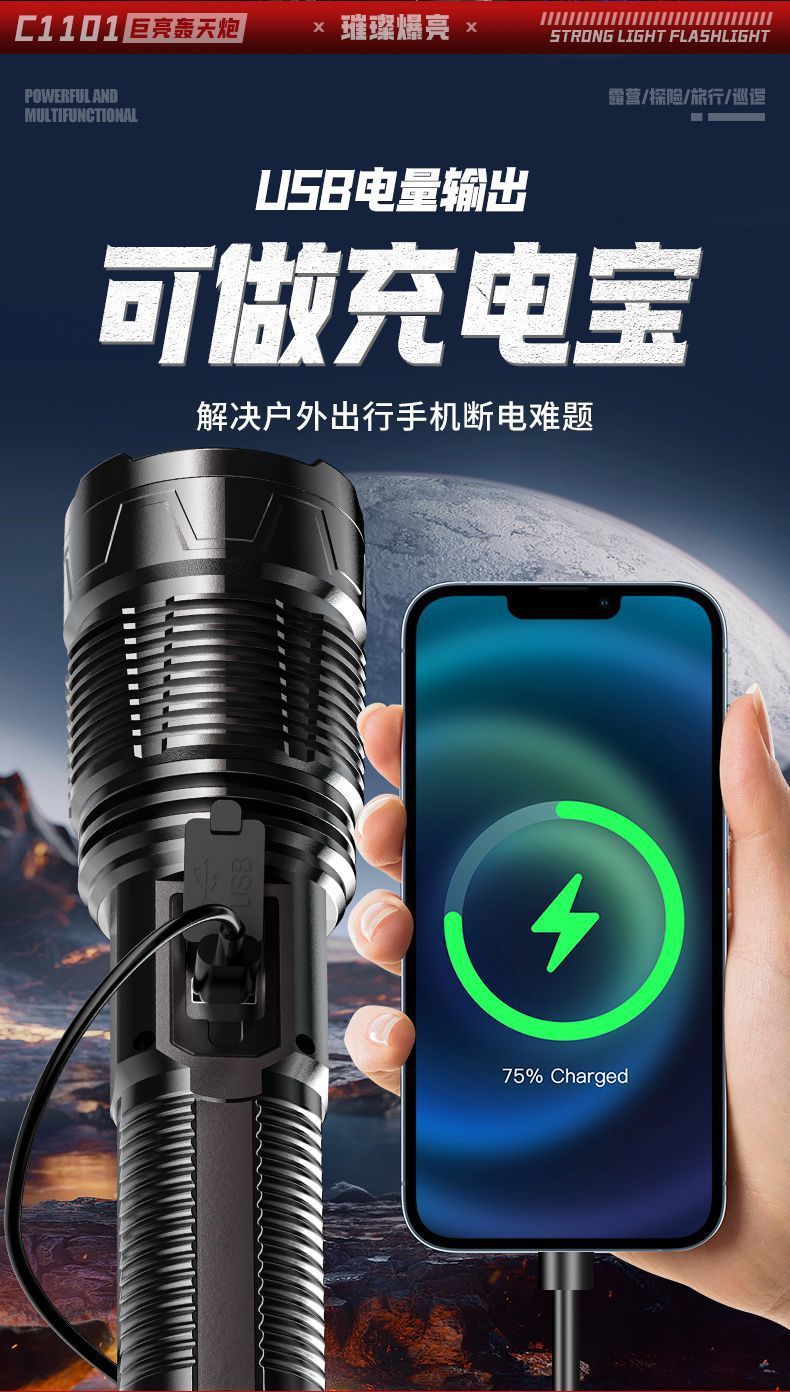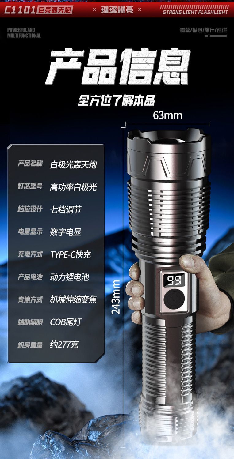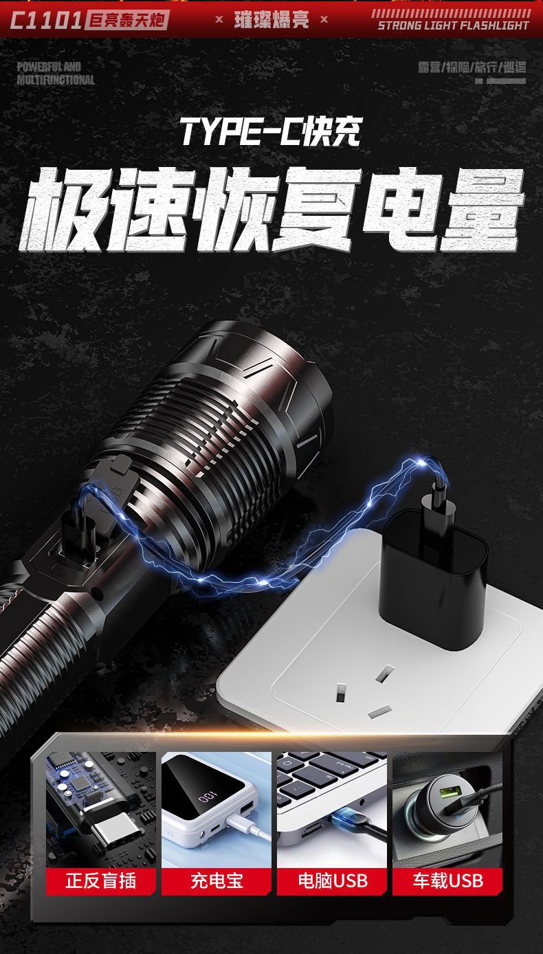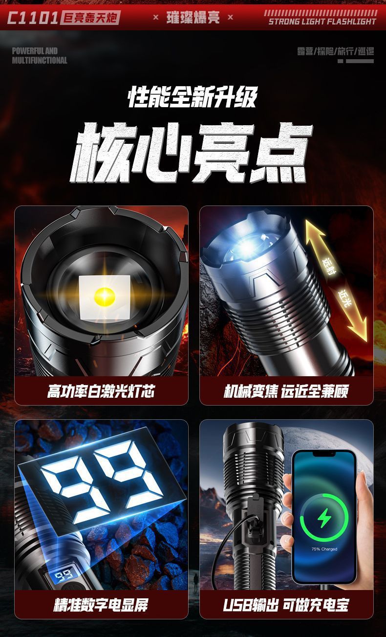 야외 다기능 충전식 손전등, 강한 빛, 매우 밝은, 장거리, 고출력, 매우 긴 배터리 수명, 속 작업 조명스토어 가기