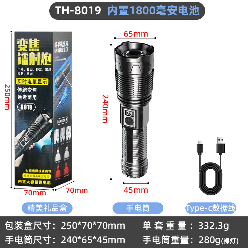 야외 다기능 충전식 손전등, 강한 빛, 매우 밝은, 장거리, 고출력, 매우 긴 배터리 수명, 속 작업 조명