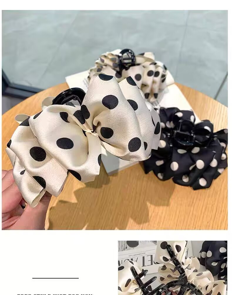• 폴카 도트 푹신한 나비 클립#화이트(13cm)